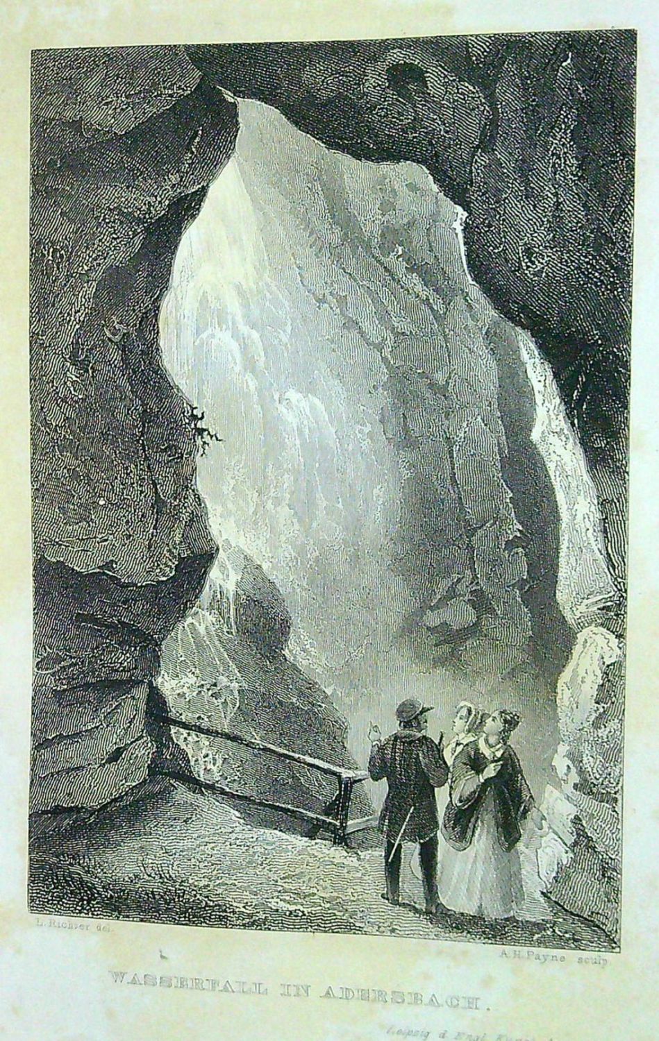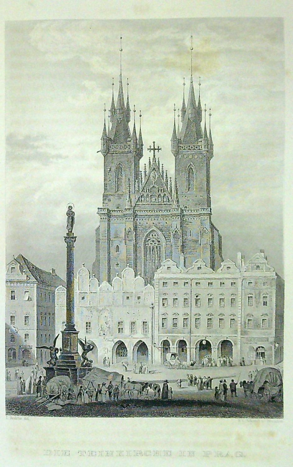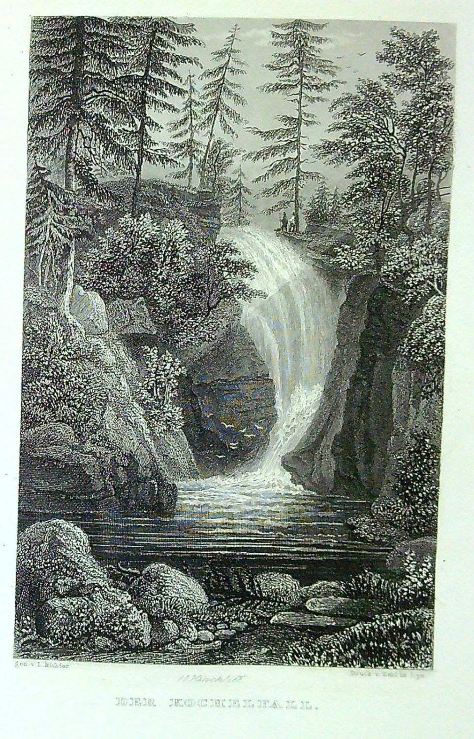 Rümann 2142; Zíbrt I, 743<br>Das malerische und romantische Deutschland, Bd. VI. Poslední kapitola knihy je věnována Praze a je doprovázena několika rytinami významných pražských památek (též starého židovského hřbitova).<br>Dobová plátěná vazba (moiré) s koženým hřbetem a nárožnicemi, ve hřbetu tlačené a zlacené ozdobné linky a kožený štítek se zlaceným a tlačeným názvem, vazba místy odřená , papír místy zahnědlý, jinak ve stavu dobrém.<br>Karl Georg Herlossohn, vlastním jménem Georg Karl Reginald Herloss (1.9. 1802 Praha - 10.12. 1849 Lipsko), pocházel z pražské malostranské německé rodiny, studoval na pražské universitě filosofii, roku 1825 se přestěhoval do Lipska, kde se věnoval novinářské a literární práci. Roku 1830 založil vlastní časopis Der Komet, který redigoval až do roku 1848. V roce 1839 podnikl cestu po Slezsku a Krkonoších se zastávkou v Praze, kterou popsal v nabízené práci. Roku 1848 převzal redakci Spindlerova almanachu a plánoval své přestěhování do Prahy, ale vážná nemoc mu plány zhatila. Zemřel zcela bez prostředků v nemocnici sv. Jakuba v Lipsku. Kromě jiného parodoval i povídky ve své době velmi oblíbeného Heinricha Clarena, pod jehož jménem dvě vlastní publikoval. Velký rozruch vzbudila jeho práce "Löschpapiere aus dem Tagebuch", kterou cenzura zabavila. Několik jeho básní zhudebnil Robert Schumann. Psal výhradně německy, ale stranil Čechům, českému národu věnoval část almanachu Mefistofeles, kde srovnával slavnou českou minulost s politováníhodnou současností. Almanach byl v Rakousku zakázán.