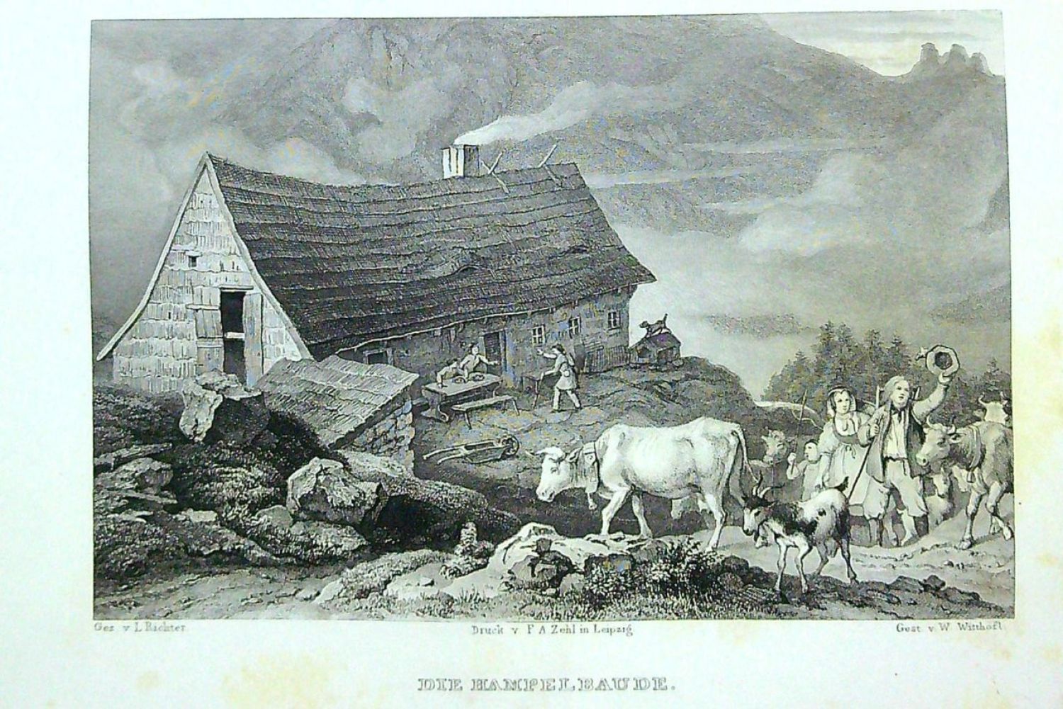 | Ilustrace: | Ve front. a v textu 30 původních celostr. ocelorytin s vyobrazením různých přírodních krkonošských scenérií a pamětihodností, které podle kreseb Ludwiga Richtera ryli různí rytci. |
