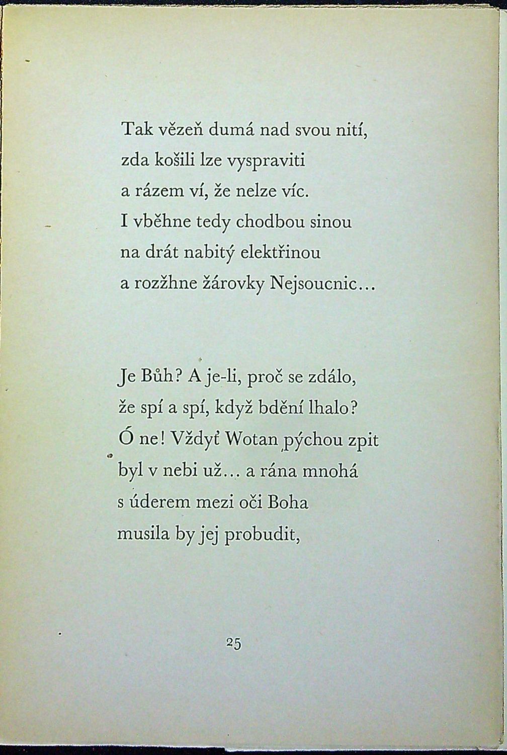 Graficky upravil F. Muzika a písmem Baskerville vytiskla Průmyslová tiskárna. Na předním listu se značkou nakladatelství rukopisná dedikace autorova "Slečně Anně Feuersteinové na papátku Vlad. Holan I. 1947". - Anna Feuersteinová (1897 Loučeň - 1981 Praha) sestra a asistentka architekta a výtvarníka Bedřicha Feuersteina.