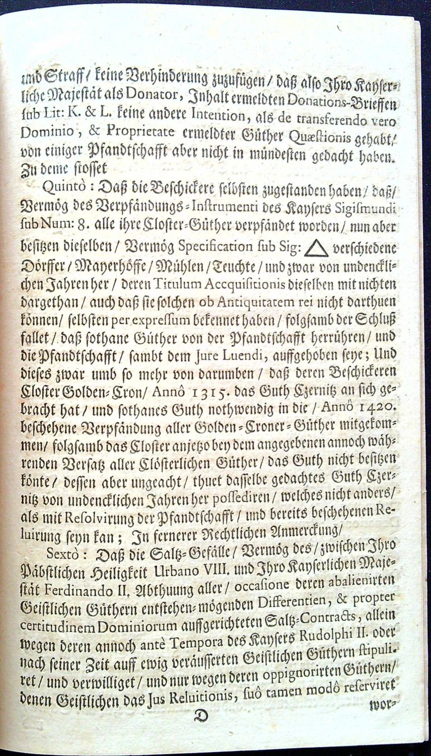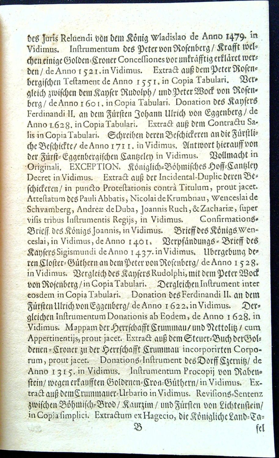 BCBT neuvádí; SKC eviduje 2 exempláře<br>Německý text gotikou, latinský antikvou, vstupní dřevořezový pásový vlys rostlinného ornamentu, vstupní iniciála propletená úponky ve výši 7 řádků, signatury, stránkové kustody. V kolofonu německy údaj, že se jedná o výpis z královských zemských desek datovaný 20. 4. 1728 a stvrzený Wilhelmem Matthiasem von Glauchowa.<br>Knižní blok sešitý nití.