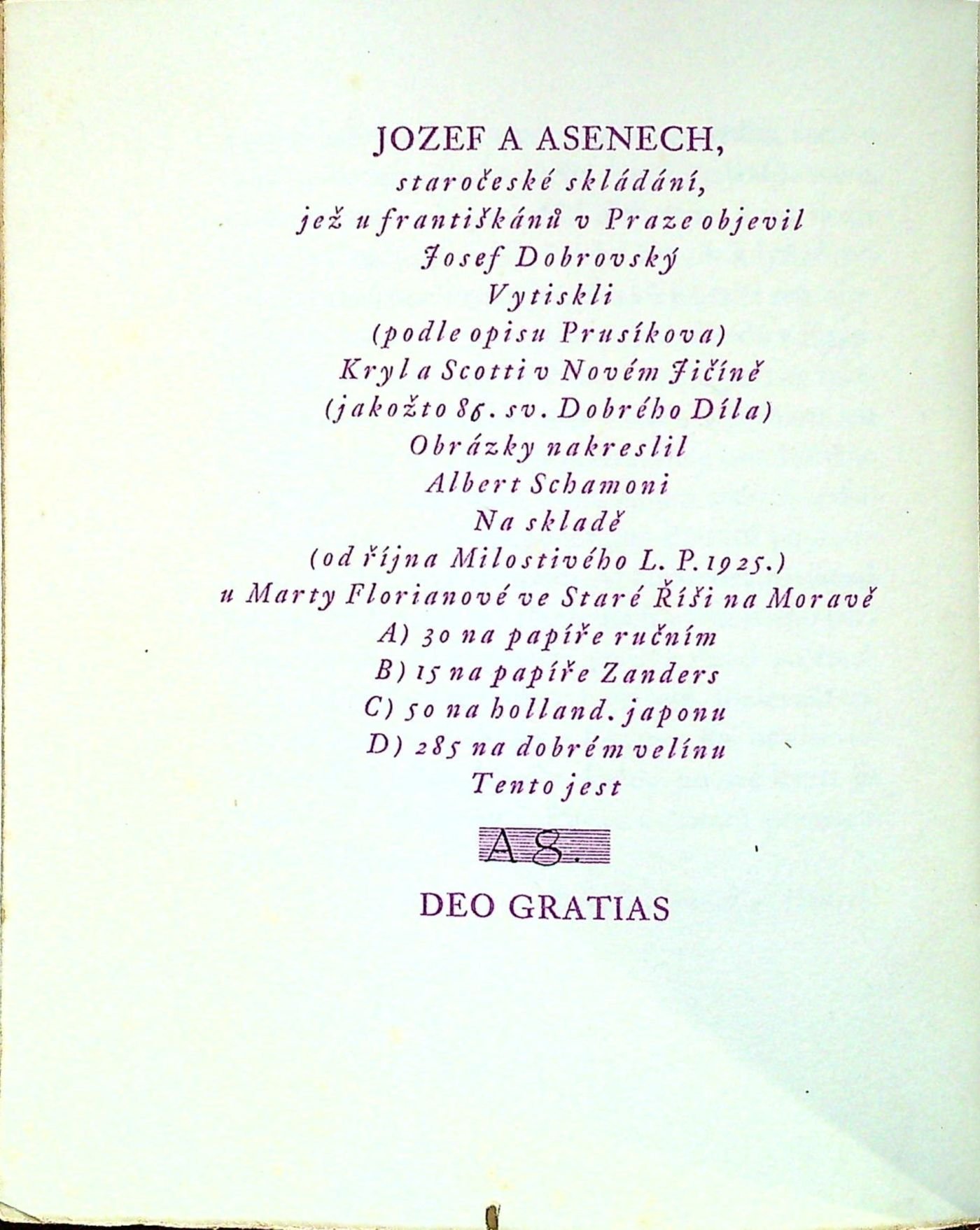 Jozef a Asenech, staročeské skládání, jež v Praze u františkánů objevil Josef Dobrovský.