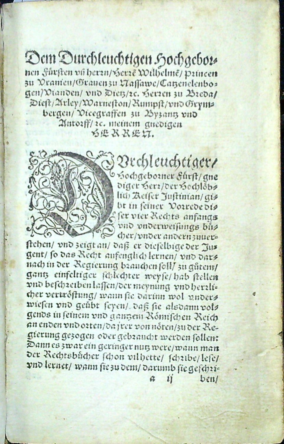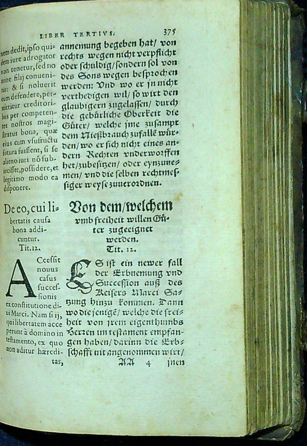(Corpus juris) INSTITUTIONES IMPERIALES LATINOGERMANICAE. Die vier Bücher INSTITUTIONUM Keisers IUSTINIANI, der jugent im Keiserlichen Rechten zum anfang und underweisung geschrieben, durch D. IUSTINUM GOBLERUM. Jetzo erst beide texten, Latein und Teutsch, zusamen gegeneinander getruckt, und in dise form gestelt.