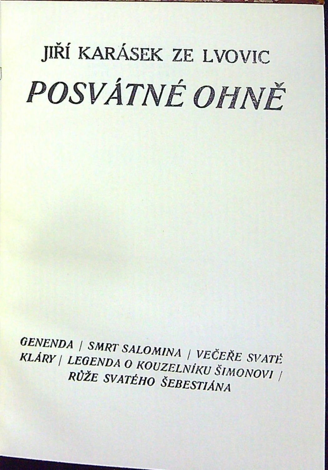 Jeden ze 300 výtisků luxusního vydání tištěného na ručním rýhovaném papíru. - Kartonová vazba potažená olejovým papírem, ve hřbetu hnědý kožený štítek s tlačeným a zlaceným názvem.