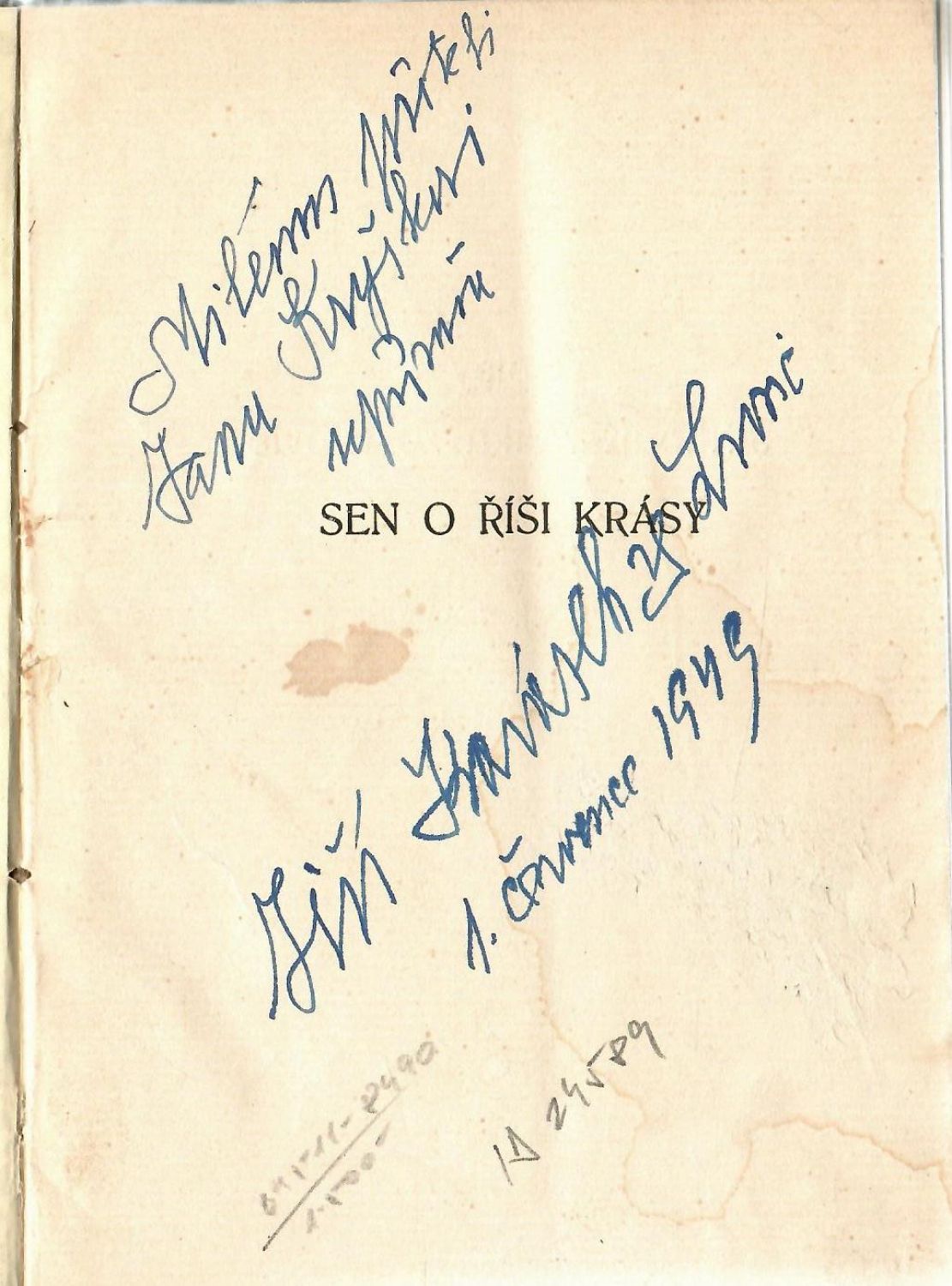Kniha vyšla jako X. svazek "Spisů" Jiřího Karáska ze Lvovic. Na patitulu rkp. dedikace modrým perem "Milému příteli Janu Kryškovi upřímně Jiří Karásek ze Lvovic 1. červenec 1949". - Dobová kartonová vazba potažená olejovým papírem s rostlinným dekorem, na přídeštích a předsádkách stejný papír světlejší barevnosti, na přední desce a ve hřbetu pap. štítky s červeně tištěným názvem. Na patitulu a jeho rubu světle hnědá skvrnka (snad od kávy), při spodním okraji patitulu mírně radírovaný papír (snad pokus o odstranění nečistoty), prvních 19 stran uprostřed svisle lehce přeložených.