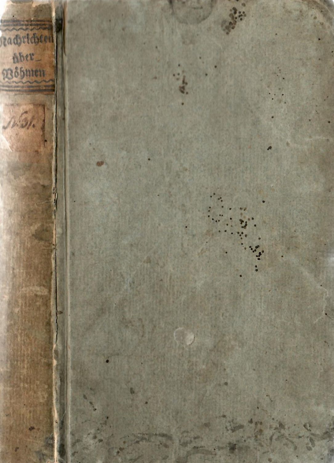 Holzmann-Bohatta III,6198 (uvádí místo vydání Salzburg); Zíbrt I,2732; BCBT 27783; SKC eviduje 1 ex. v Moravské zemské knihově a tři exempl. vydané v Salzburgu.<br>Tištěno švabachem, živá záhlaví, tištěné poznámky pod čarou, dvojité linky, mizící ozdobné linky, v záhlaví začátků některých kapitol uprostřed horního okraje větvička, na tit. listu viněta, vstupní vlys, tučně tištěné versálky, v úvodu báseň věnovaná císaři Josefu II.<br>Johann Joseph Kausch (16.9. 1751 Löwenberg - 10.3. 1825 Liegnitz) slezský lékař a spisovatel, člen několika učených společností ve Vídni, v Berlíně, ve Vratislavy, ...Krom zprávy o Čechách publikoval ještě zprávy o Slezsku a o Polsku.