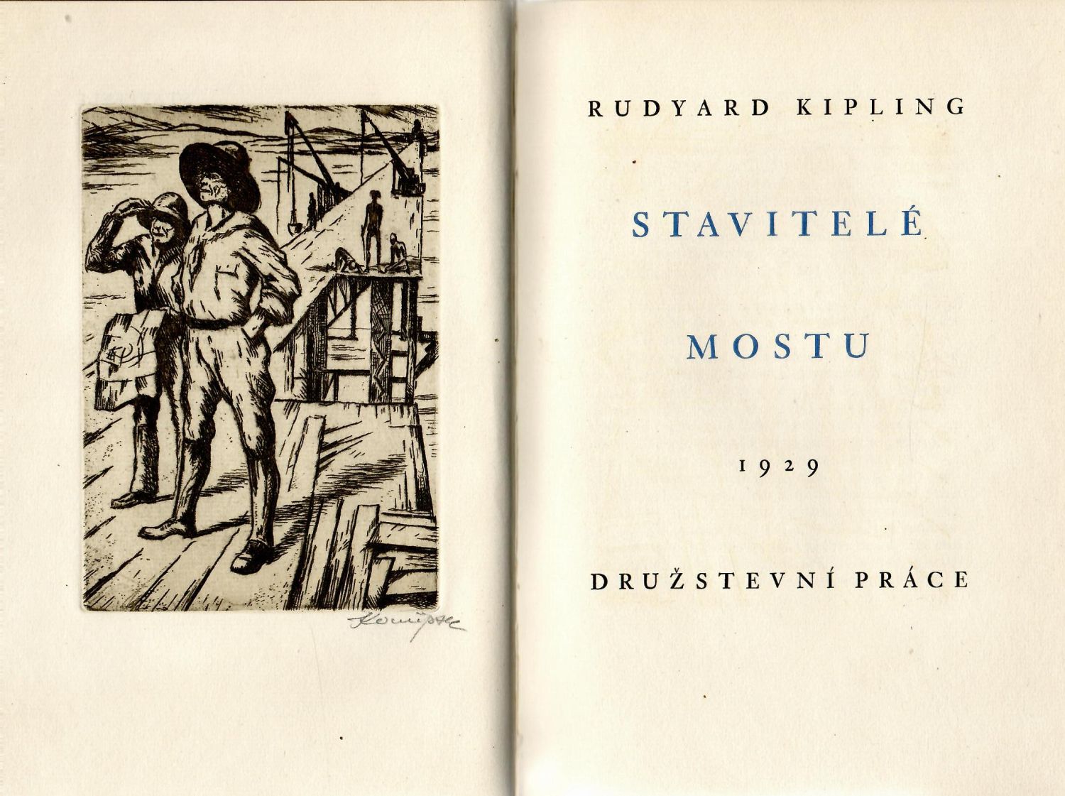 Slunovrat, edice krásných tisků, sv. V. Ze sbírky The Day´s Work přeložili František Kolátor a Alfred Pflanzer. Vytiskli Kryl a Scotti v Novém Jičíně ve 440 výt. Vazba podle návrhu Emanuela Frinty. Ve hřbetu tlačený a zlacený název. Ručně čísl. ex. 351/400. Velmi dobrý stav.