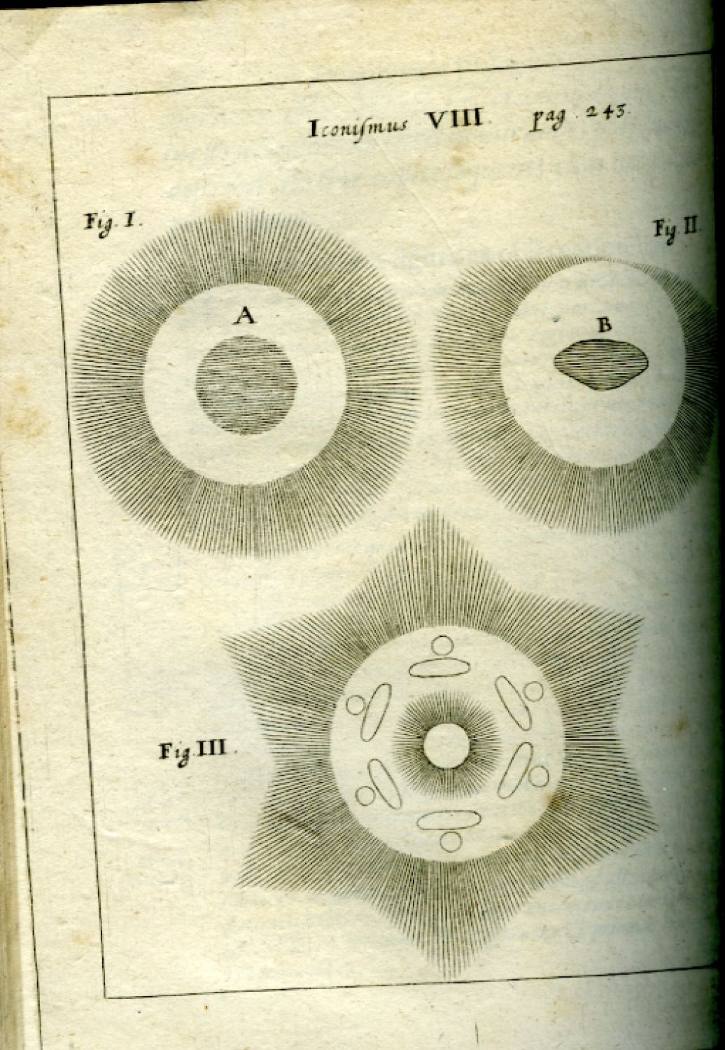 | Ilustrace: | Mědiryt. předtitul, na rubu tištěného tit. listu celostr. rytý erb a 12 mědirytů s vyobr. planetárního systému, slunečních skvrn, měsíčního povrchu, fází měsíce, Saturnu s prstenci aj. |