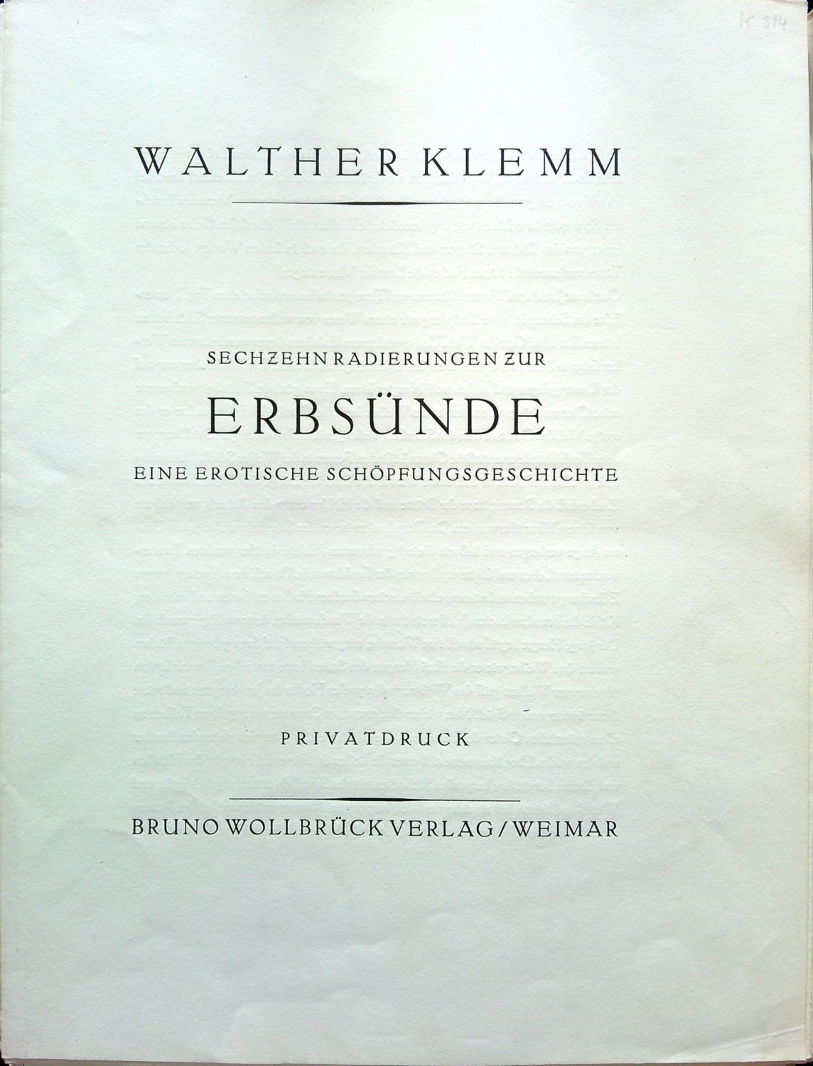 Walter Klemm (18. 6. 1883 Karlovy Vary - 11. 8. 1957 Výmar) Studoval ve Vídni na Uměleckoprůmyslové škole u prof. Kolomana Mosera. Mezi lety 1905-1908 měl společně s Carl Thiemannem pronajatý atelier v Praze-Liboci, kde spolu vytvořili řadu pozoruhodných barevných dřevořezů. Před první světovou válkou se stal členem Berlínské secese. Po válce pobýval v umělecké kolonii v Dachau, odkud odešel do Výmaru, kde byl jmenován profesorem na zdejší Großherzoglich-Sächsische Kunstschule, a kde mezi jeho studenty patřili mimo jiné Oswald Baer a Fritz Lattke.