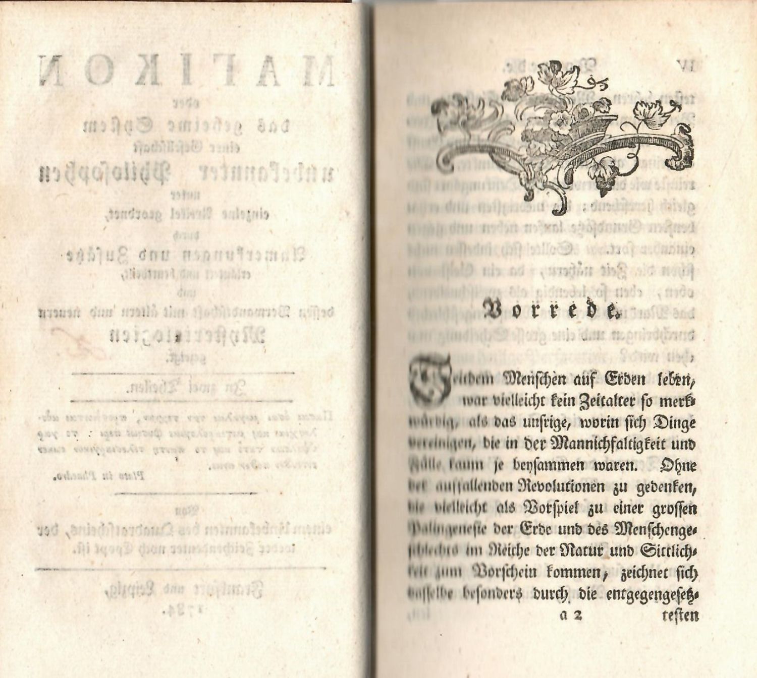 MAGIKON (řecky) oder das geheime System einer Gesselchaft unbekannter Philosophewn unter einzelne Artikel geordnet durch Anmerkungen und Zusätze erläutert und beurtheilt, und dessen Verwandtschaft mit ältern und neuern Mysteriologien gezeigt. 2 Theilen