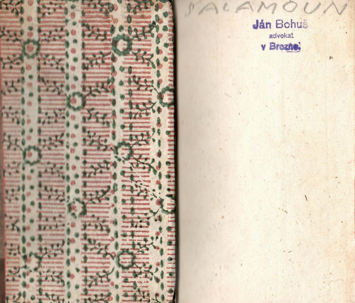 Wolfstieg 8722; Holzmann-Bohatta II,3430<br>Tištěno švabachem, francouzský text a latinská slova antikvou, řecký text alfabetou, tištěné poznámky pod čarou. Na straně 235 titulní list druhého dílu, průběžně paginováno. Vstupní dřevorytový vlys, koncové viněty. <br>Dobová vazba s kartonovými deskami potaženými olejovým papírem, kožený hřbet a nárožnice, ve hřbetu 5 vazů, ve druhém poli původní vínově červený kožený štítek s tlačeným a zlaceným názvem, v poli třetím zelený s dokončením názvu, v ostatních polích tlačený a zlacený rostlinný ornament, červeně barvené ořízky, na přídeštích dobový škrobový papír s ornamentem. Na přední předsádce razítko jednoho z předchozích vlastníků "Ján Bohuš advokát v Brezne", nad ním a na zadní předsádce podpis tužkou posledního vlastníka, grafika Jiřího Šalamouna z jehož knihovny byla kniha zakoupena. Vazba místy lehce ohmataná. <br>Johann Friedrich Kleuker (24.10. 1479 Osterode - 1.6. 1827 Kiel) německý protestantský teolog a universitní profesor, přítel J. G. Herdera, od roku 1798 profesor teologie na universitě v Kielu.