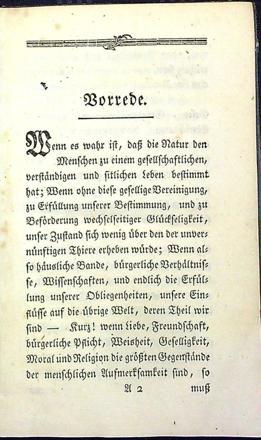 Wolfstieg 6775.<br>Tištěno švabachem, latinská slova antikvou, uprostřed horního okraje stran dvojitá mizící linka. Dvě pásové ozdobné tyče, tučně tištěné vstupní iniciálky.<br<Dobová kartonová vazba, na tit. listu podpis perem jednoho z předchozích vlastníků "Dr. Jene" a číslo knihy. Od vnitřního okraje strany 125 až do konce a od vnějšího okraje od strany 97-113 a od strany 125 až do konce drobné dírky od červotoče.<br>Adolph Franz Friedrich Ludwig Freiherr Knigge (16.10. 1752 Bredenbeck - 6.5. 1796 Brémy). Německý spisovatel, svobodný zednář a přední člen bavorského Řádu iluminátů, se kterými se v roce 1784 rozešel po neshodách s jejich hlavním představitelem Adamem Weishauptem, kterému vytýkal pedantskou panovačnost a kterého podezříval ze skrytého jesuitství. Knigge velmi podporoval prosazení lidských práv, jeho nejznámější prací je pojednání o základních principech lidských vztahů. V němčině se od té doby slovo "Knigge" začalo používat pro vyjádření dobrých mravů či etiketu.