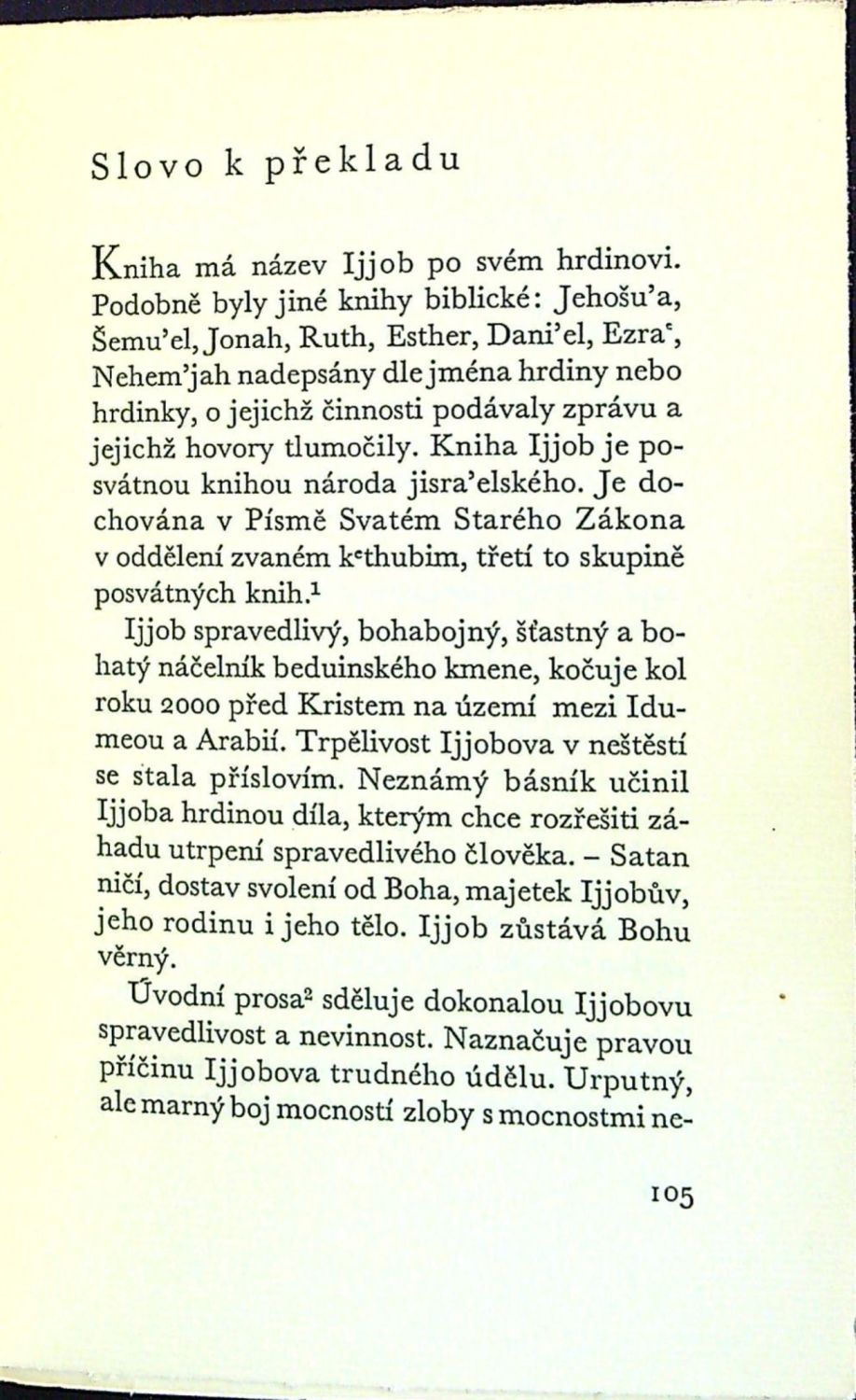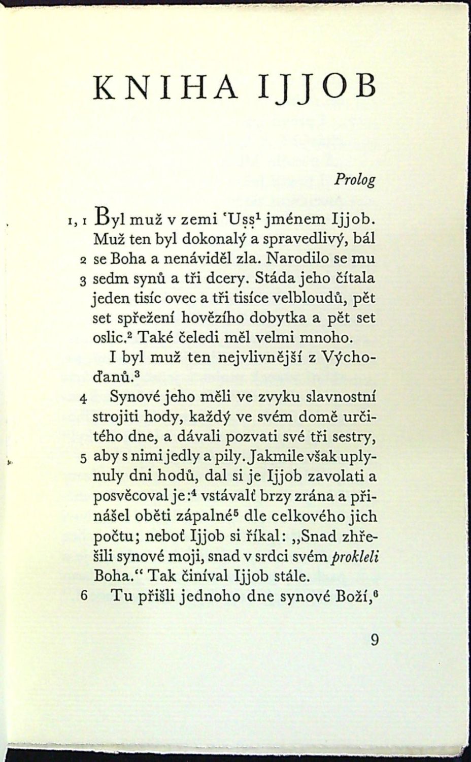 Ex. č. 4 z 10 výtisků přednostního vydání tištěného na ruční papír Zanders. Obálka lehce zaprášená, knižní blok nerozřezaný. Z původního textu hebrejského přeložil a poznámkami doplnil dr. Josef Heger.