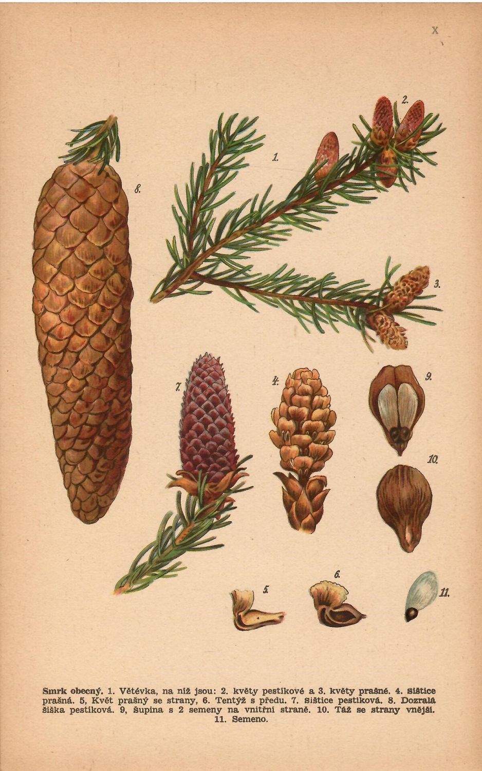 20 barvotiskových tabulí, na kterých je vyobrazeno 142 rostlin. Papírový obal ve hřbetu značně potrhán, ohmatán a ošoupán.