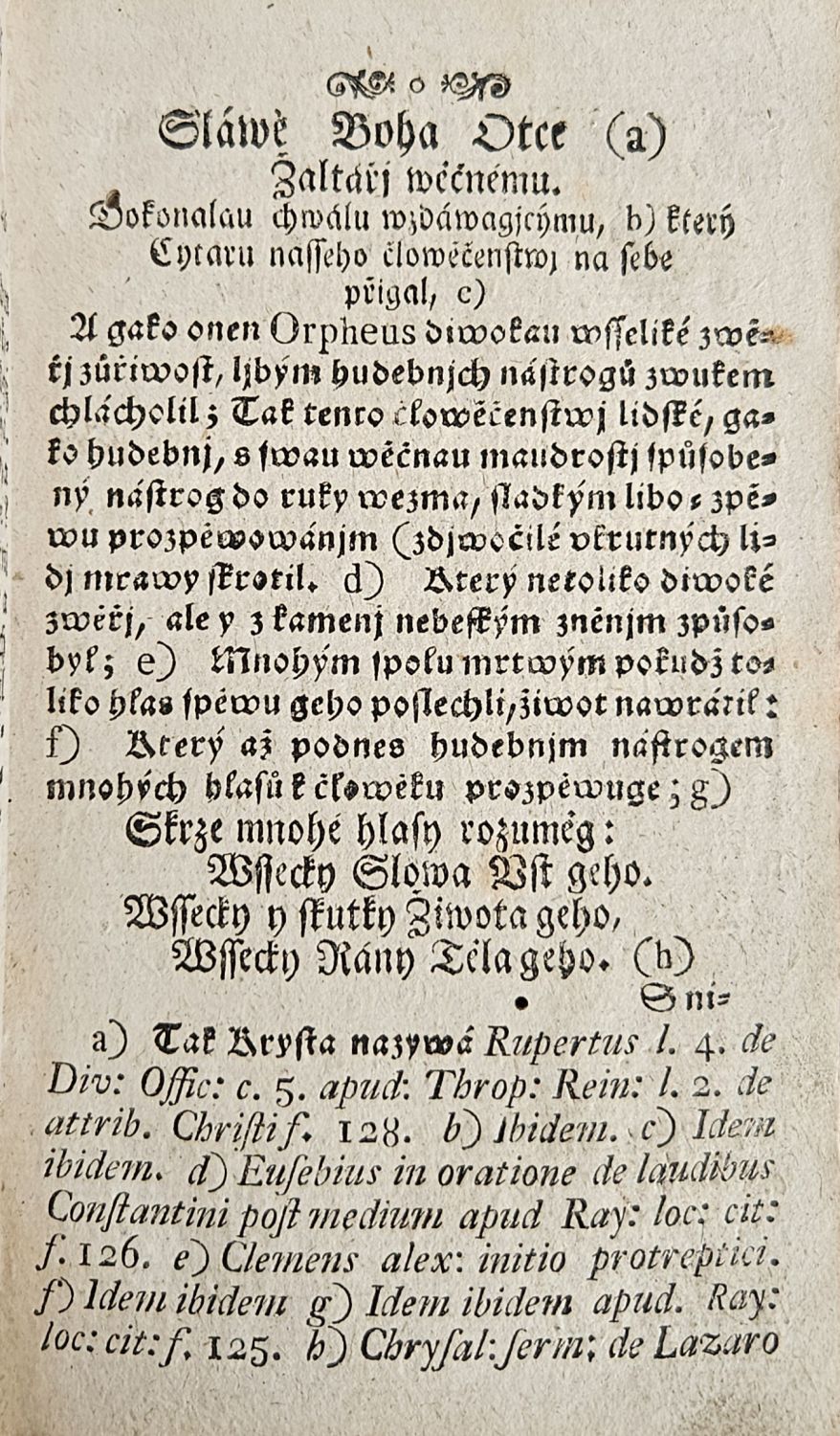 Cytara Nowého Zákona Prawého Boha, w předrahých Krystowé Wjry Tagemstwjch, a Swatých geho Ljbo=Zpěwné oslawugjcý aneb: Pjsně Celo = Ročnj, s njmiž wěrná Dusse w každý čas Boha chwáliti, při weyročnjch Slawnostewch milostné Syna Božjho Wtělenj, a přediwné Swěta Wykaupenj sobě potěssytedlné připominati, we wssech Potřebách a Přjpadnostech skormaucenau Mysl obweseliti může. K Duchownjmu Potěssenj wssem Wlastencům předstawené.