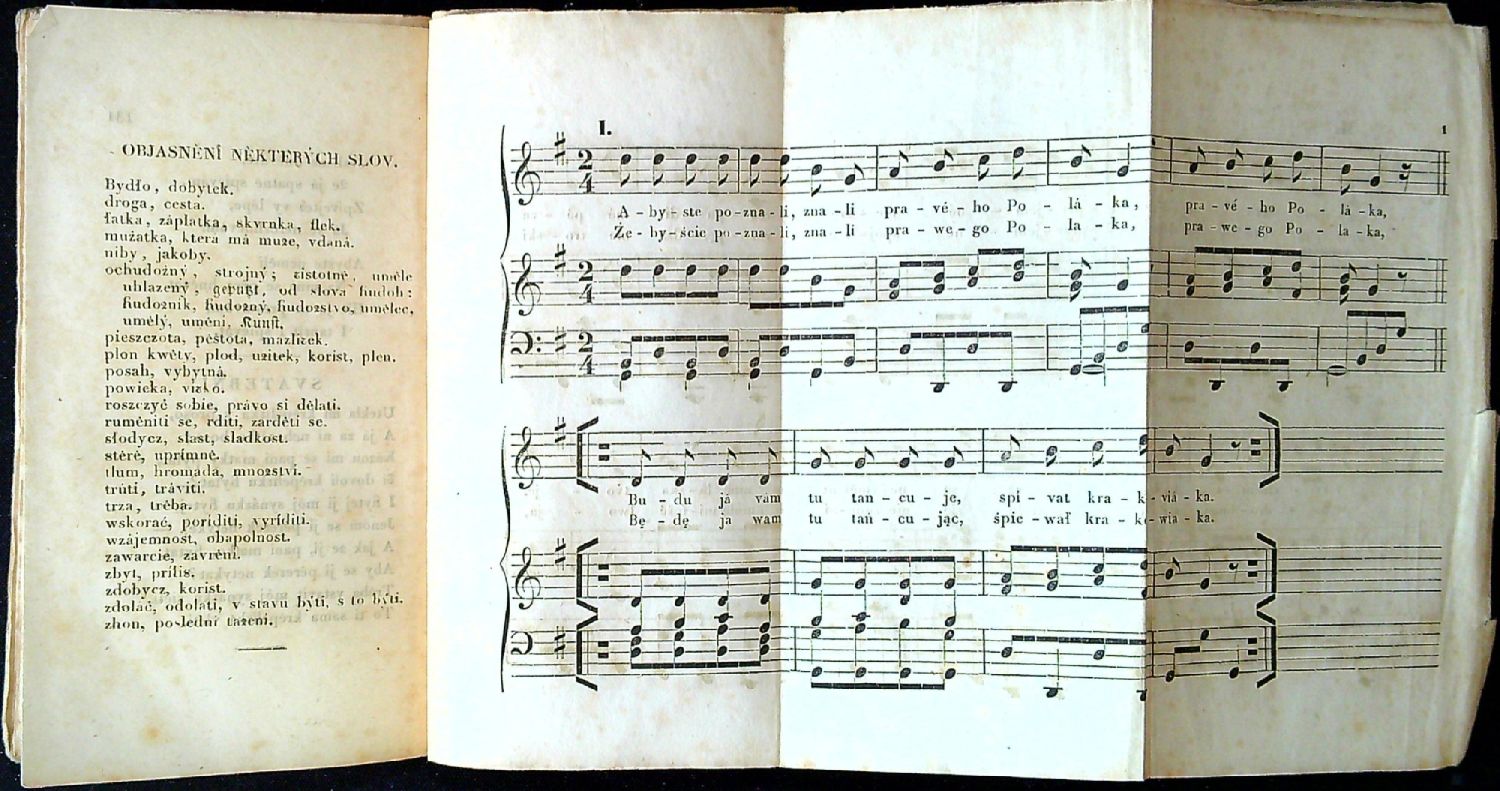 Krakoviaky, polské národní spěvky, póvodně i v českém překadu. nápěvy pri fortepianě.