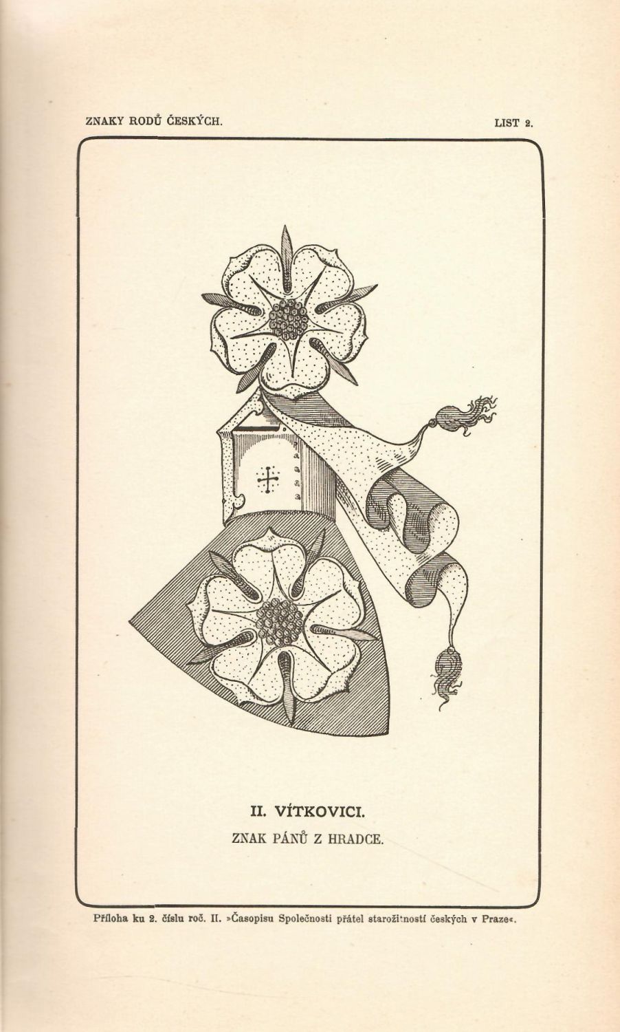 Znaky Rodů Českých wydané při Časopisu Společnosti přátel starožitností českých w Praze roč. II. (1894.) až VI. (1898.) Řada I. (List 1. - 50.) (S popisy a ukazatelem.) Prací ...