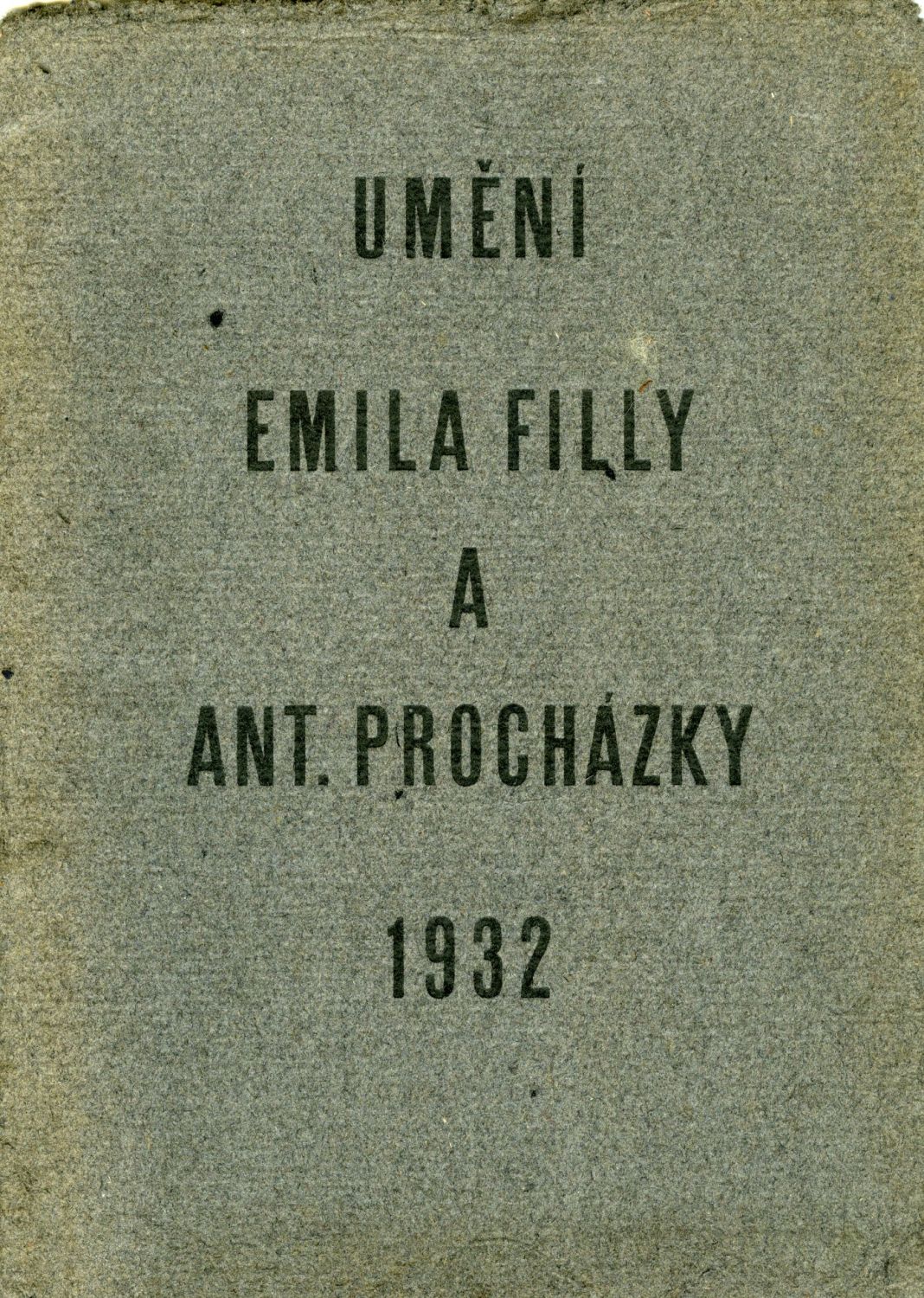 Rozšířená přednáška Dr. V. Kramáře, proslovená při zahájení výstavy E. Filly a A. Procházky na podzim 1932 v Brně. Graf. upravil Jan Sládek, vytiskli Kryl a Scotti. - Jeden z neudaného počtu nečísl. výt. na ofsetu. Hřbet obálky potrhaný, listy čisté.