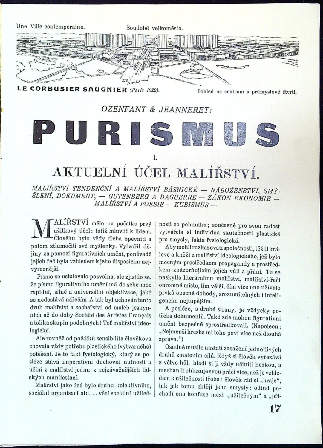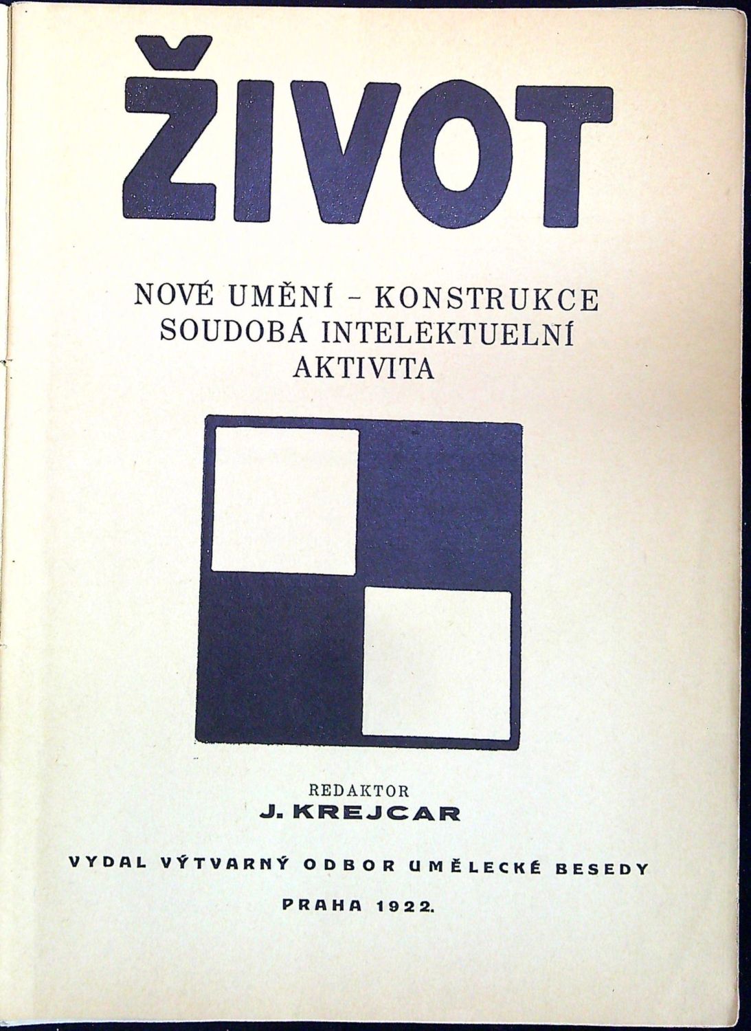 Sborník vyšel v prosinci 1922, typograficky upravil Jaromír Krejcar, vytiskla knihtiskárna "Politika" a clichés V. Neubert na Smíchov. Tištěno na dvojím druhu papíru, světle hnědém a bílém ofsetovém. V textu řada ilustr. a schematických vyobrazení a řada vyobrazení fotografických (Neubertem tištěné technikou cliché nalepené při horním okraji do knižního bloku). Na straně 8-15 francouzský text původního textu Ozenfanta a Jeannereta o purismu psaný pro Život. Na sborníku spolupracovala řada členů Devětsilu (Černík, Honzl, Nezval, Seifert, Teige), Umělecké Besedy (Frinta, Holan, Holý, Kotík,..) a řada dalších nezařazených osobností (Feuerstein, Kotěra, Šíma, Voskovec), ze zahraničních (Archipenko, Behrens, Delluc, Derain, Foujita, Chaplin, Le Corbusier, Lipchitz, Man Ray, Ozenfant, Perret, ....). <br>Zadní strana obálky zašpiněná a místy lehce pomačkaná, přední strana obálky chybí, též papírový pokryv hřbetu. Knižní blok rozvolněný, text samotný bez závad.