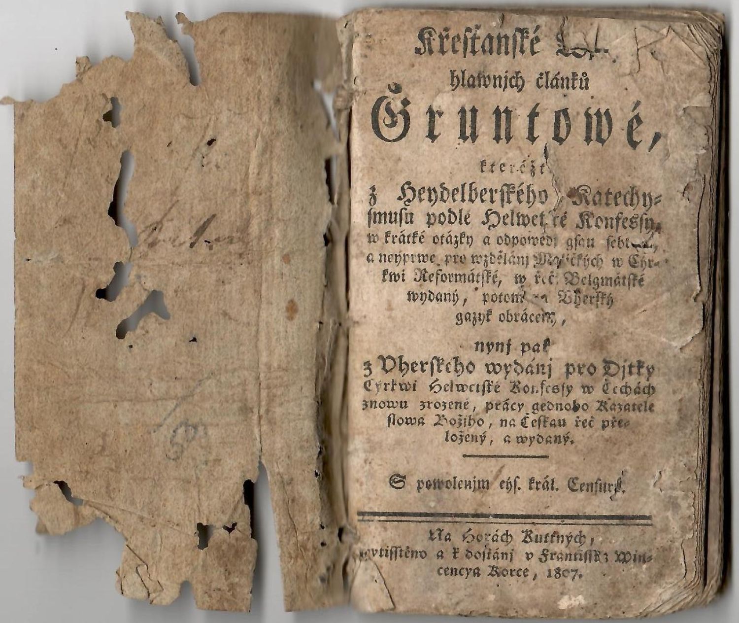 Křesťanské Wjry hlawnjch článků Gruntowé, kteréžto z Heydelberského Katechysmusu podle Helwetské Konfessy w krátké otázky a odpowědj gsau sebrané a neyprwe pro wzdělánj Maličkých w Cýrkwi Reformátské, w řeči Belgmánské wydaný, potom na Uherský gazyk obráceny, nynj pak z Uherského wydanj pro Djtky Cýrkwi Helwetské Konfessy w Čechách znowu zrezené, práy gednoho Kazatele slowa Božjho, na Českau řeč přeložený, a wydaný.
