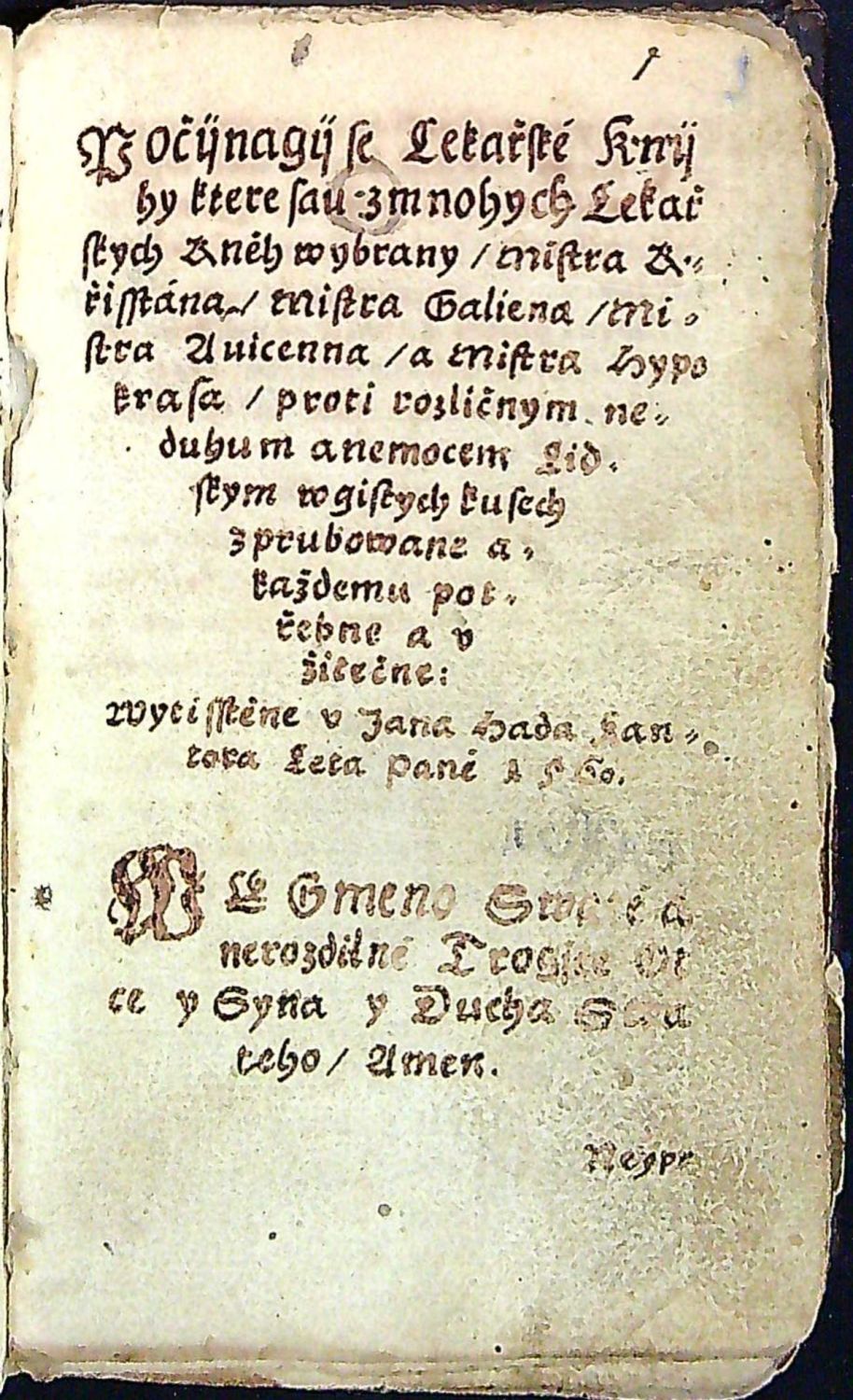 Lekarzske k njžky z mnohych knjh lijkařských wybrané Mistra Křisstana Y giných p[ro]ti neduhum a nemocem rozličným w gistých kusých z prudowané každému potřebné y vžitečné.