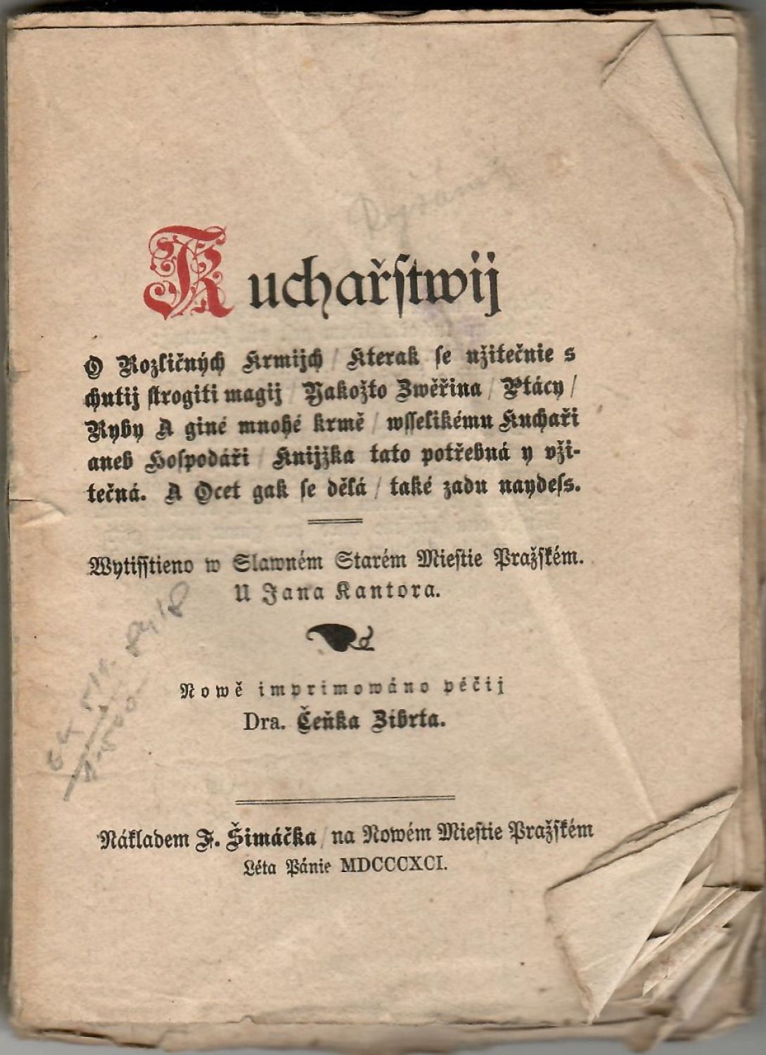 Tištěno gotikou, iniciála v názvu a názvy na líci listu I a na rubu listu LXXVII tištěny červeně. K vydání připravil dr. Čeněk Zíbrt dle 1. vydání, které vytiskl v Praze Jan Kantor Had. - Pap. obálka chybí, knižní blok neoříznutý a místy nerozřezaný. Tu a tam drobné hnědé flíčky, pří spodním vnějším okraji oslí uši.