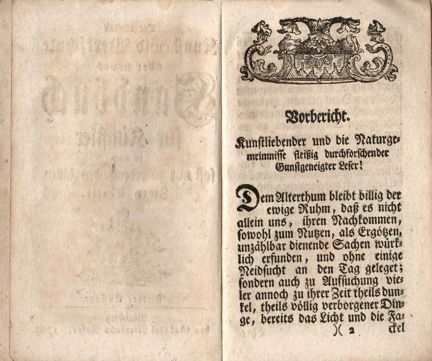 Die curieuse Kunst = und Werkschule oder neues Handbuch für Künstler in allen fast nur erdenkenden Fällen. I. Theil (von II)