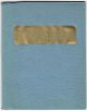Původní obálka z modře barveného hadrového papíru s chlopněmi, na přední straně původní zlacený papírový štítek s názvem.