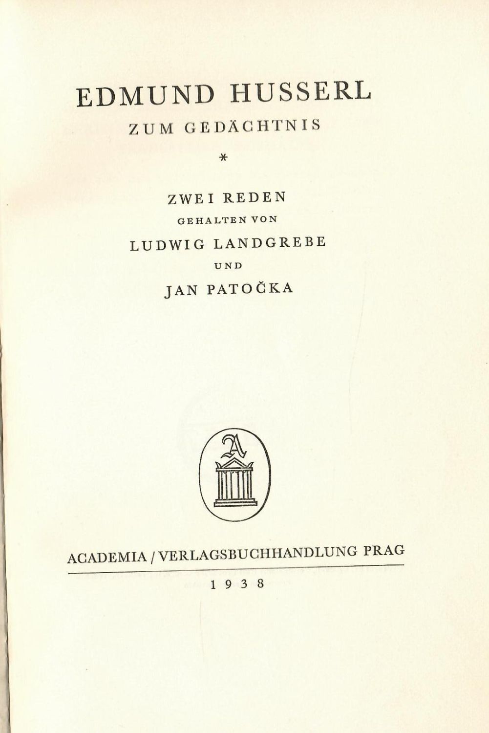 Edmund Husserl zum gedächtnis. Zwei reden gehalten von Ludwig Landgrebe und Jan Patočka.