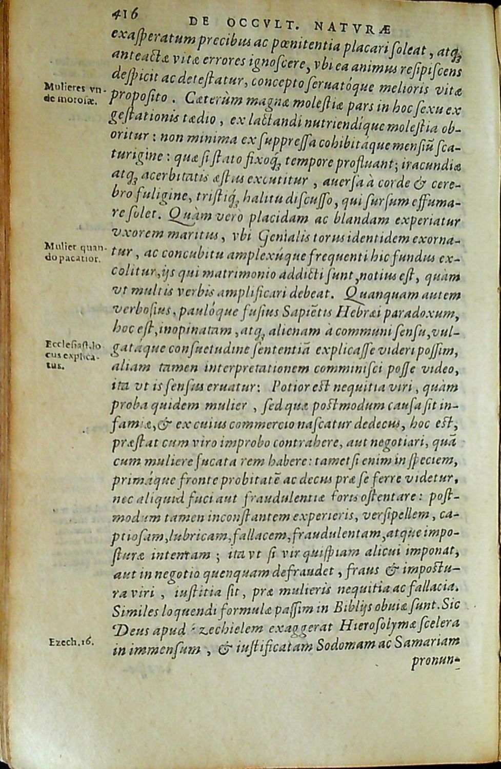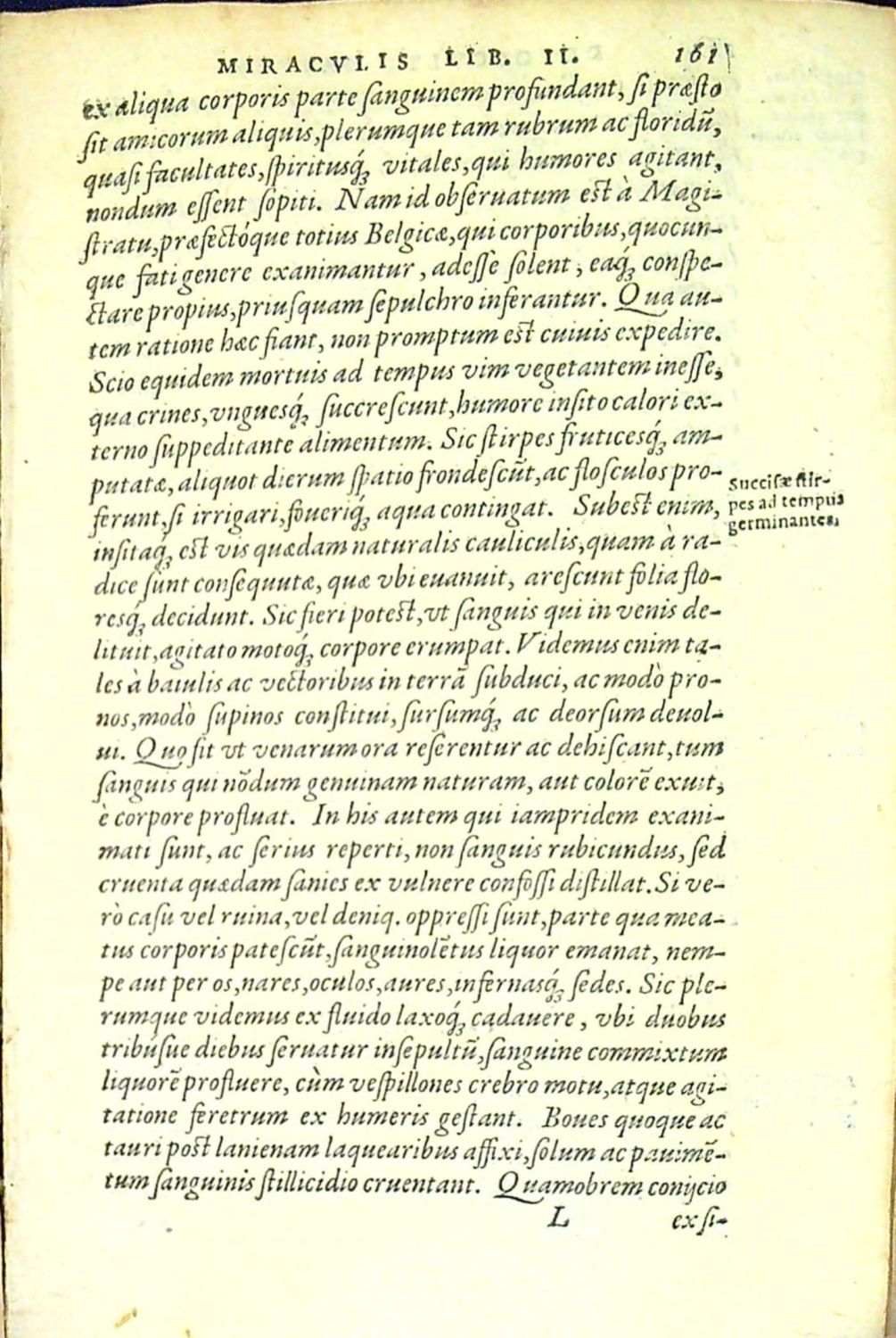 Cailett II,6480 (vydání v Antverpách u Plantina 1574 a 1593); Furguson II, strana 23-24 (eviduje jiná vydání); Dorbon-Ainé strana 270 (jiná vydání); Adams I, 419; VD 16 L1106 až 1118 (toto vydání neeviduje)<br>Na titulním listu signet Plantinův, konturové iniciály na rostlinném a ilustrativním pozadí zalomené do výše 4-6 řádků, živá záhlaví, tištěné poznámky po stranách, na líci posledního listu impresum datované v měsíci dubnu roku 1581 v Antverpách.<br>Dobová pergamenová vazba, barvené ořízky. Při horním okraji hřbetu starý záznam perem o názvu knihy. Pergamen na vazbě zahnědlý a místy zkrabatělý, na obou deskách otvory od vázacích tkanic, které chybí. Papír mírně zažloutlý. Na rubu posledního listu provenienční záznam perem "Henricum Henninum informant ab anno 1682". Za titulním listem vlepený list papíru s rkp. poznámkami o knize z 19. století, na konci vlepený list papíru s poznámkami psanými stejnou rukou s informacemi o jednom z předchozích majitelů knihy Henri Henninovi.<br>Levinus Lemnius (20.5. 1505 Zierikzee - 1.7. 1567 tamtéž), byl holandský lékař a učenec, po smrti své manželky se stal knězem. "Occulta naturae miracula" je jeho nejznámějším dílem, kniha vyšla poprvé latinsky roku 1559 v Antverpách a byla přeložena do několika jazyků. Dílo čerpá z různých klasických zdrojů, především z Aristotela, též z Hippokrata. Autor se ve své práci pokusil uvést do souladu přírodní filosofii klasických pramenů s křesťanskou doktrínou. Kniha mimo jiné obsahuje i řadu hygienických předpisů, zmiňuje se též o červeném víně a pálence, mandragoře, antimonu, ale také o pověrách, kouzlech a čarodějnictví.<br>Henri Christian Hennin byl dle poznámky vlepené na lístku za závěrečným impresem holandský, který působil ve druhé polovině 17. století v Duisburgu a pak v Utrechtu, kde roku 1703 zemřel.