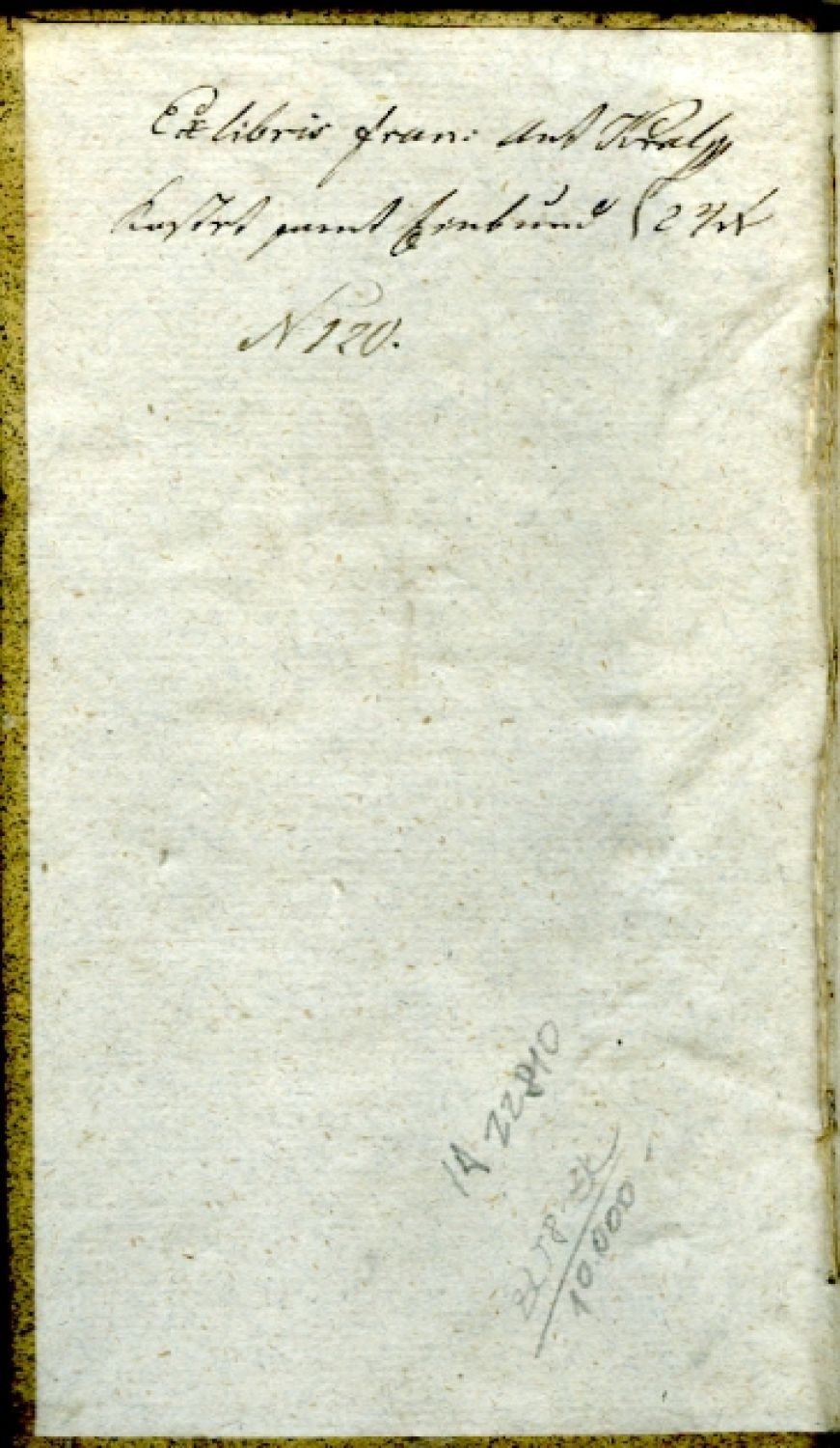 VD 18 11770619; Worldcat Cat. eviduje 2 ex. v německých knihovnách.<br>Mizící linky, uprostřed horního okraje krátká dvoulinka, latinskými číslovkami uvedená jednotlivá pravidla.<br>+ přívazek: [Engelthaler, Franz / Arnold, J. G.:] Der Kunsterfahrne Spargel=Gärtner und immerwährender Spargel=Kalender oder kurze und deutliche Anweisung zur Erzeugung, Pflanzung und Behandlung des Spargels, nebst Unterricht was durch das ganze Jahr in jedem Monat bei Erzieglung eines schönen Spargels zu thun nothwendig ist. Praktisch bearbeitet. Budißin und Leipzig, in Commißion bei dem Buchhändler J. G. Arnold, gedruckt bei E. G. Matthiä in Bauzen (Budyšín), (1795), 8°, 32 stran, červeno-černě tištěný titulní list olemovaný v rámu z paragrafů, uprostřed horního okraje stran dvojitá mizící linka, tiskař v kolofonu. - Kniha je uvedena předmluvou vydavatele (J. G. Arnolda?), ze které vyplývá, že se jedná o nové vydání knihy faráře Engelthalera "Neuer Spargelkalender" (vydané 1792 v Praze u Schönfelda), rozšířené o poznámky vydavatele. - Při horním okraji hřbetu původní kožený štítek s tlačeným a zlaceným názvem, ve spodní polovině hřbetu zelený kožený štítek s tlačenou a zlacenou ozdůbkou rostlinného charakteru. Vazba místy zkrabatělá a odřená, zlacení hřbet. štítků zčásti setřené, na hřbetě a přední desce hnědé skvrny, na vnějších okrajích listů při horních rozích průběžně menší skvrnka; přední přídeští s rkp. vlastnickým přípisem z přelomu 18. a 19. stol. "Franz Ant. Kral ...".<br>Franz Engelthaler (1750-1815) byl farářem v Oseku v Plzeňském kraji a též odborníkem v oblasti živočišné výroby. V překladu do českého jazyka vyšla též jeho kniha o chovu a nemocech ovcí v Praze roku 1800. Nabízená kniha pojednává o pěstování chřestu a obsahuje naučení, jak si v kterém měsíci v roce mají pěstitelé počínati. - VD 18 11886293-003; Worldcat Catalogue eviduje pouze 2 ex. v německých knihovnách, pražské vydání 1792 pouze v jednom ex. v Budapešti.