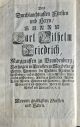 Dvoubarevně tištěný titulní list, tištěno švabachem, latinský text antikvou, živá záhlaví od sazby oddělená jednoduchou linkou, místy tisk ve dvou sloupcích, konturové iniciály v jednoduchém rámečku na rostlinném pozadí zalomené do výše 7 řádků, plné iniciály propletené úponky zalomené do výše 3-6 řádků, viněty, ozdobné lišty z ornamentů, vstupní dřevořezový vlys, za titulním listem celostr. mědiryt. erb, na jeho rubu tištěná dedikace Fridrichovi Vilémovi I., králi pruskému a markraběti braniborskému. Na 7 mědiryt. tabulích vyobrazeno 14 různých koňských plemen, na ostatních různé jezdecké pomůcky, druhy hřebčínů, dresury, cvičiště a způsobů rajtování.