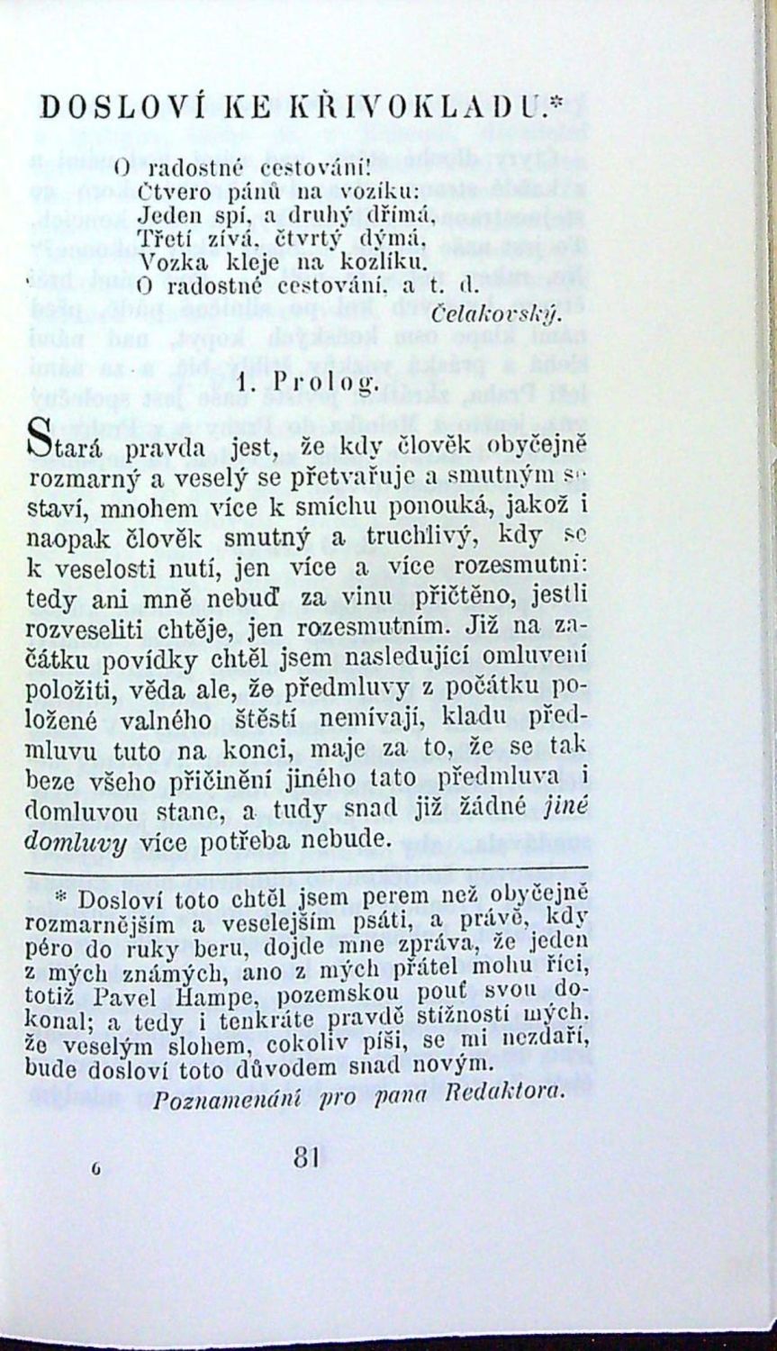 Dvoubarevně tištěný titulní list, upravil Cyril Bouda, ve front. reprodukce dvou Máchových kreseb. Text upravil a poznámkami opatřil dr. Fr. Krčma. <br>Individuální vazba z temně zelené hlazené vepřovice, na přední desce zlacený jednoduchý rám, uvnitř rámu červená iniciála Máchova příjmení, ve hřbetu tlačený a zlacený název, zlacená svrchní ořízka. Hřbet následkem slunečních paprsků vyšisovaný, ochranné kartonové pouzdro. Přední strana původní pap. obálky přivázána. Poslední dva listy s údaji o tisku v horní třetině uvolněny od knižního bloku.