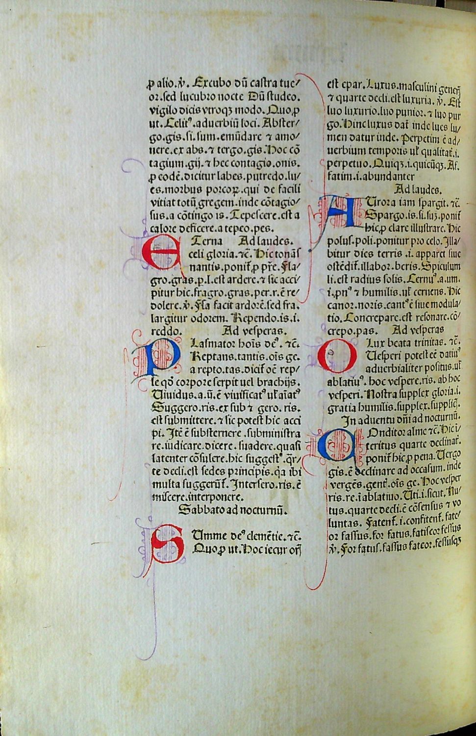 260 + 1 list (A10,B-C8;a-y8;1-6/8;7/10 + 1 list) prví a poslední list čistý. Tištěno rotundou ve 37 řádcích, dvousloupcový tisk, neživá záhlaví, signatury. Červeně a modře rubrikováno, v textu řada kreslených modrých a červených iniciál ve výši 3-5 řádků na červeném či světle fialovém podkladu a s různě dlouhými lehce načrtnutými prostorovými rozvilinami, na foliu a1 vícebarevná malovaná iniciála ve výši 9 řádků s akantovým korpusem písmene F olemovaná zlaceným rámem a doplněná o místy zlacenou vegetativní drolerii, na foliu a6 malovaná iniciála ve výši 6 řádků s akantovým korpusem písmene na zlaceném pozadí doplněná o zlacená sluníčka, na foliu p8 vícebarevná malovaná iniciála ve výši 7 řádků s akantovým korpusem písmena L olemovaná zlaceným rámem a doplněná o místy zlacenou drolerii. Impresum na rubu folia 7/9.