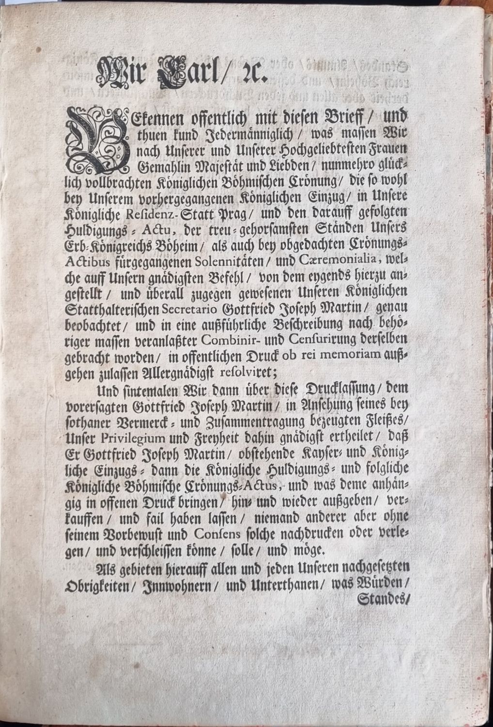 Außführlich und Gründliche Vier Beschreibungen, Erstens: Deß Einzugs, Welchen beyde Römische Kayser = und Königliche Majestaten CAROLUS Der Sechste, Mit Dero Allerdurchlauchtigsten Frauen Gemahlin Elisabetha Christina, In die Königliche drey Prager=Stätte gehalten. Andrtens: Der Ihro Majestät dem Kayser als König zu Böheim Von denen gesammten Böhmischen Ständen abgelegten Allgemeinen Erb = Huldigung. Drittens: Mehr Allerhöchst besagt Ihro Majestät deß Kaysers Und Viertens: Ihrer Majestät der Kayserin Anno 1723. vorbeygegangenen Königlichen Böhmischen Crönungen.
