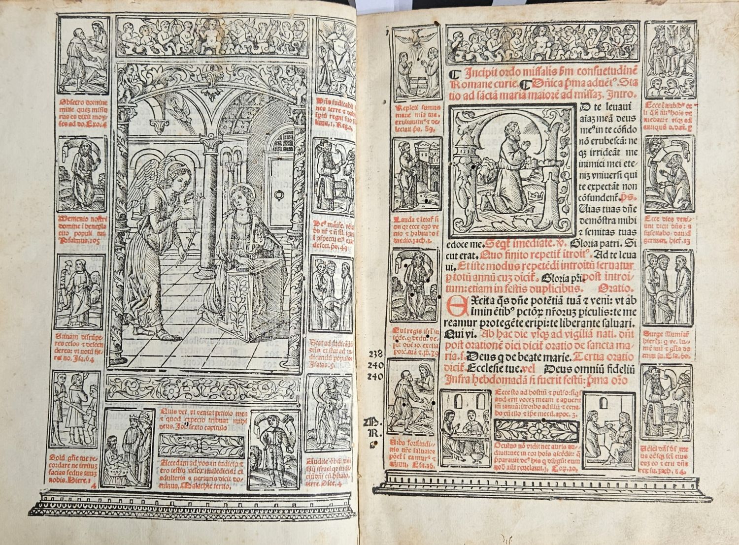 Missale Romanum nouiter ip[m]ressum cum annotationibus in margine ad facillime o[mn]ia que in ipso ad alias paginas rmittunt i[n]uenienda: Et quu[m] alicinus sancti missa i[m]perfecta est: notatus est locus vbi ingri debeat. Insuper cu[m] figuris festi, uitatum ac euangelior[u]m initia exornantibus iuxta materia[m] co[n]tenta[m] diligentissime acco[m]modatis.