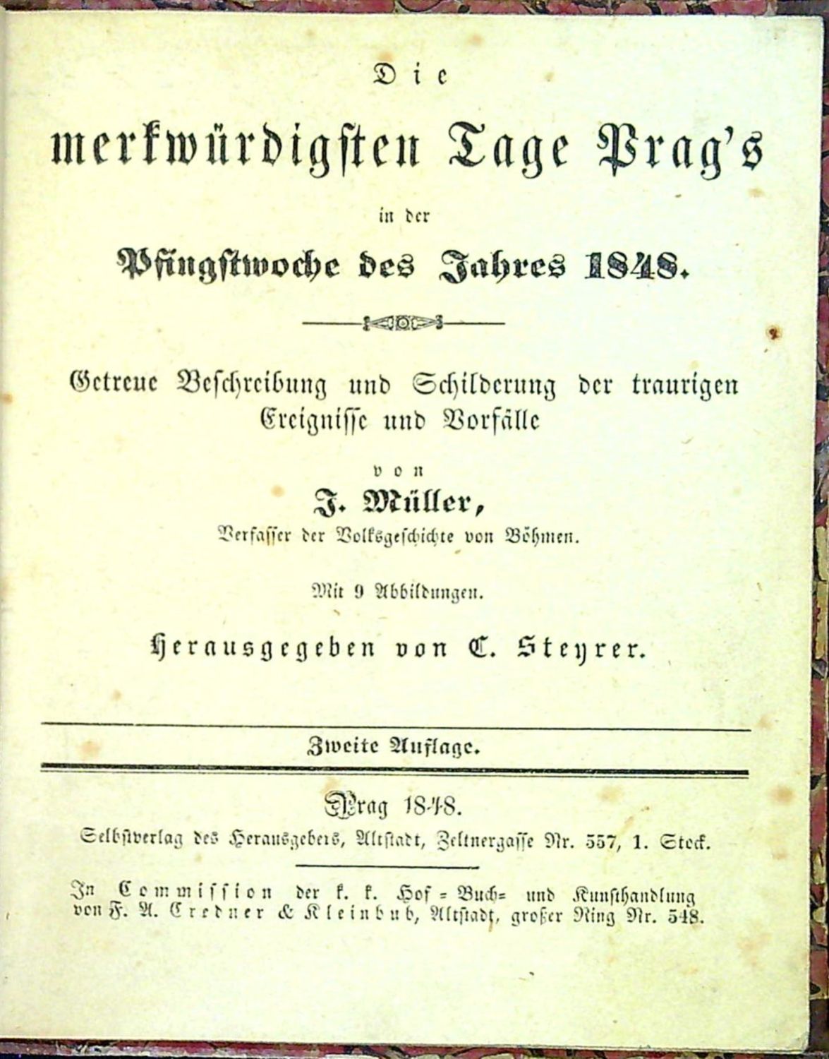 Die merkwürdigsten Tage Prags in der Pfingstwoche des Jahres 1848. Getreue Beschreibung und Schilderung der traurigen Ereignisse und Vorfälle ..