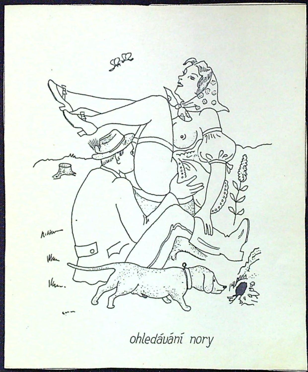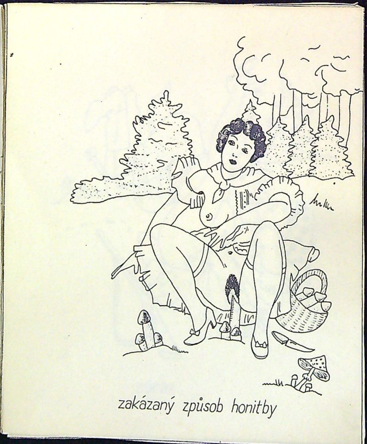 Hýsek 341; 342; 506 (jiná vydání)<br> Původní papírová obálka, ve které je volně vloženo 11 listů s reprodukcemi pornografických kreseb s kaligraficky psanými názvy. Na přední straně obálky obálky název a pornograf. kresba, na straně zadní hlava myslivce v klobouku. Názvy kreseb: zakázaný způsob honitby; záraz; někdy si pán staví a pes honí; pytlák, probírka mlází; ohledávání nory; hodím si ji přes rameno a pospíchám k lesu; sázení mladé kultury; škodná; na číhané; na vysokou. Rozměr knižního bloku 145 x 120 mm, tištěno po lícové straně listů.