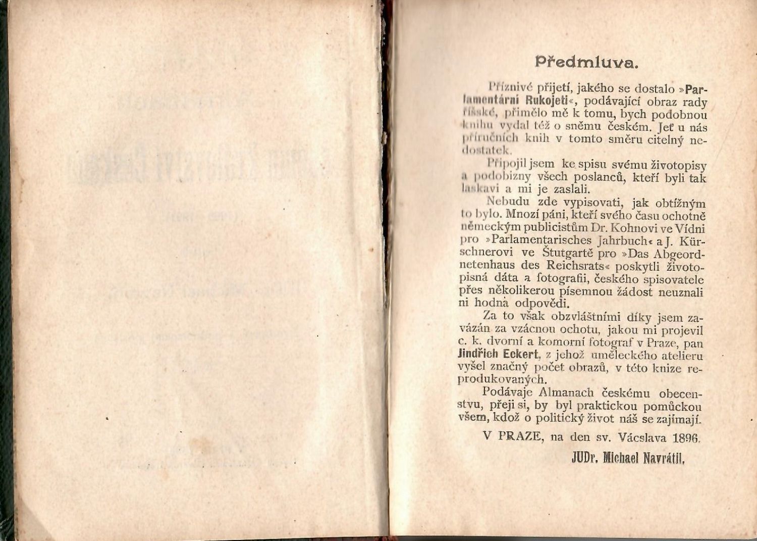 Na titulním listu podpis Jiřího Šalamouna. Za titulním listem při horním okraji lehce prasklý knižní blok. Listy zažloutlé, desky ošoupané, pokryv hřbetu podřený.