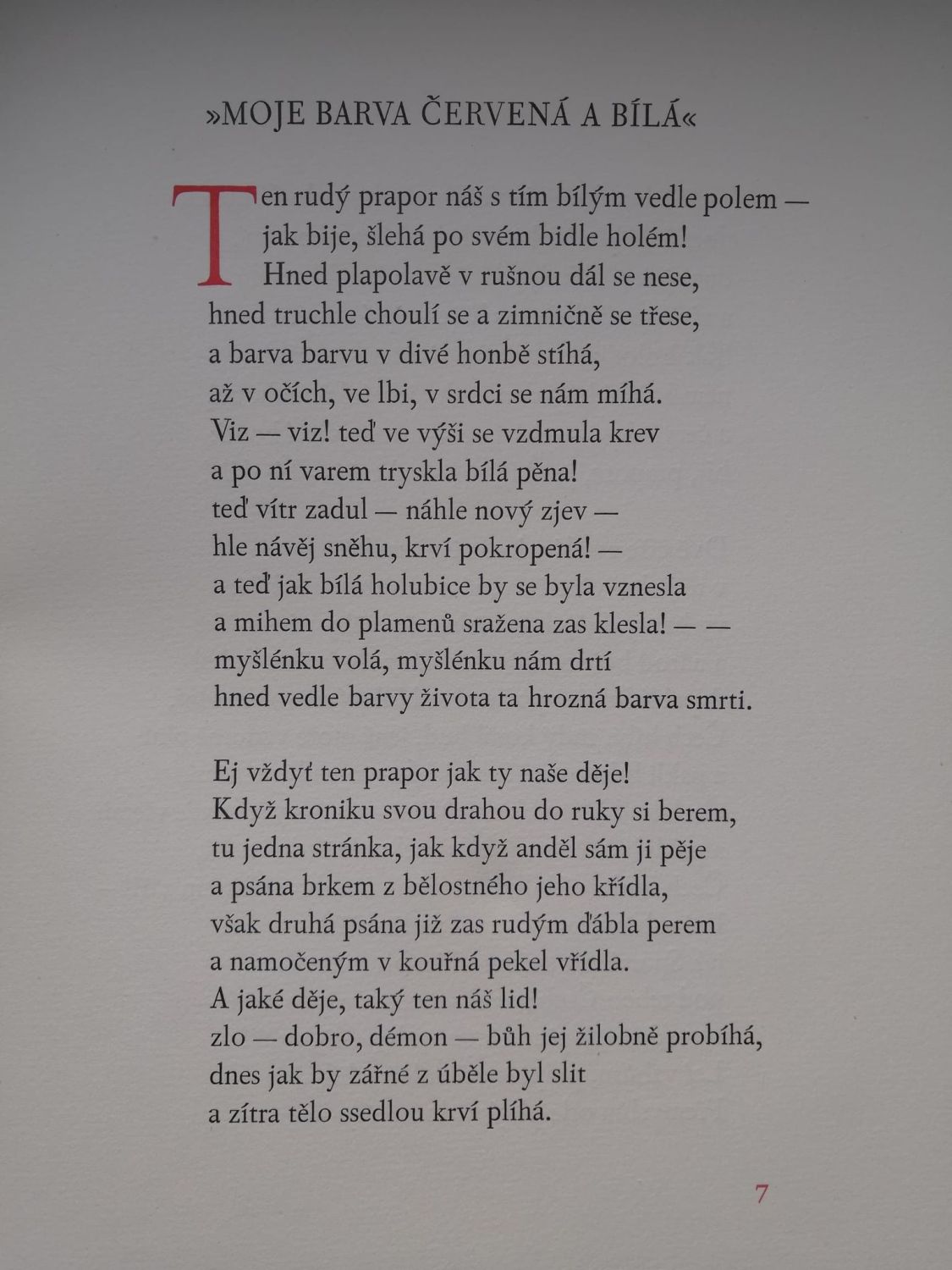 | Ilustrace: | Tři původní celostranné lepty Jana Konůpka, na tit. listu viněta; červeně tištěná paginace stran a plné iniciály zalomené do výše 3-4 řádků. |