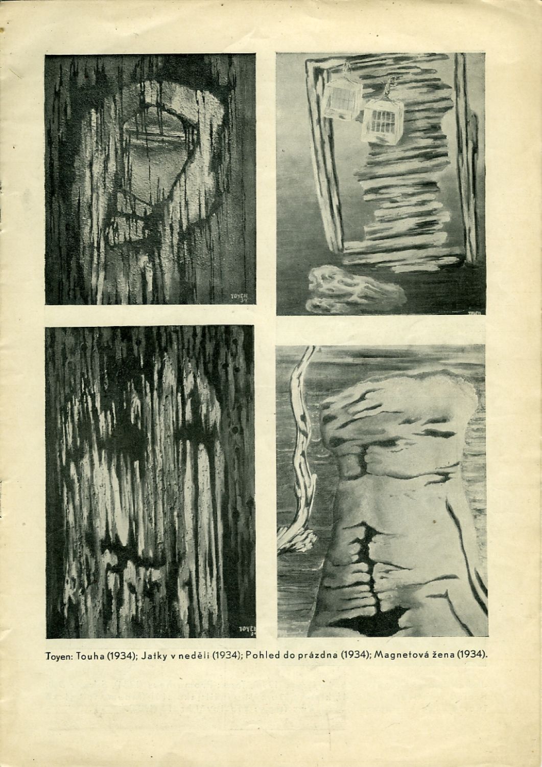 | Ilustrace: | Na obálce reprodukce fotografické koláže Jindřicha Štyrského, mezi str. 24-25 čtyři nepaginované listy s 35 vyobrazeními prací různých autorů. |