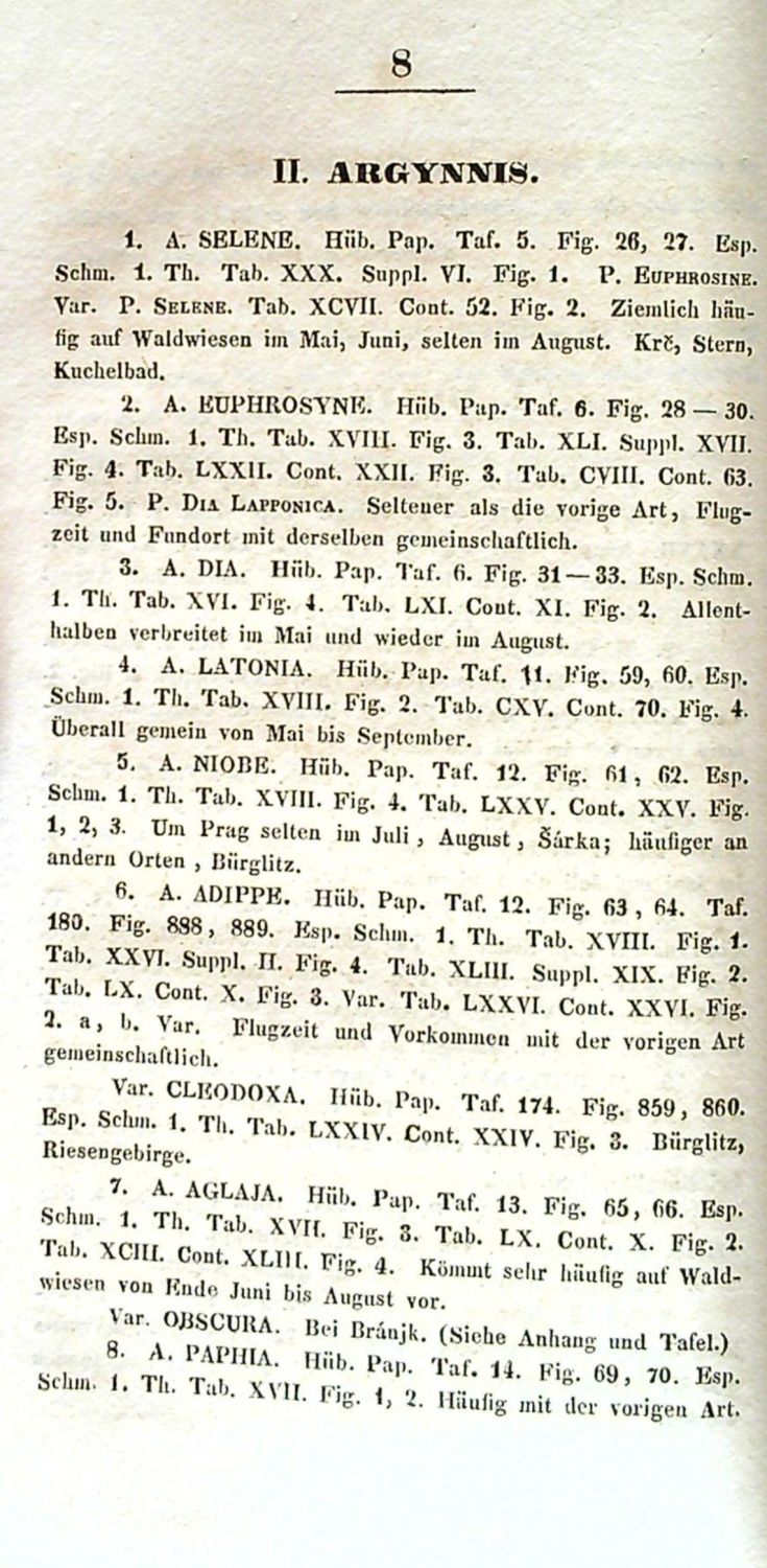 Tištěno antikvou, ve front. litografie s vyobrazením dvou motýlů dle kresby F. Fiebera. Původní papírová obálka, v textu několik drobných hnědých skvrnek, jinak ve stavu velmi dobrém.<br>František Antonín Nickerl (4.12. 1813 Praha - 4.2. 1871 Praha), český lékař a entomolog německého původu. Od roku 1854 profesor přírodovědy na pražské polytechnické universitě. Věnoval se především studiu motýlů a objevil několik nových druhů, jeden druh můry byl pojmenován na jeho počest "Luperina nickerlii". Zasloužil se o publikování prvních seznamů motýlů z území Čech. Nabízená práce vznikla ještě během jeho studia na pražské Karlo-Ferdinandově universitě a pojednává o denních motýlech v Čechách.