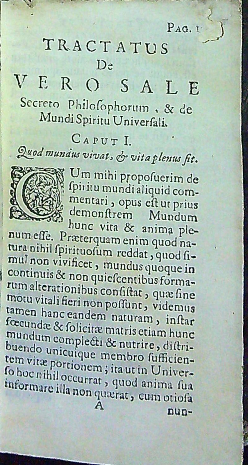 TRACTATUS De VERO SALE Secreto Philosophorum, & de Universali Mundi Spiritu, Gallice primo scriptus A DOMINO DE NUYSEMENT, Nunc simplicissimo stylo Latine versus A LUDOVICO COMBACHIO, D & Illustrissimorum Hassiae P.P. Medico Ordinario. Liber non minus curiosus quam proficuus, utpote tractans de cognitione verae Medicinae Chemicae.