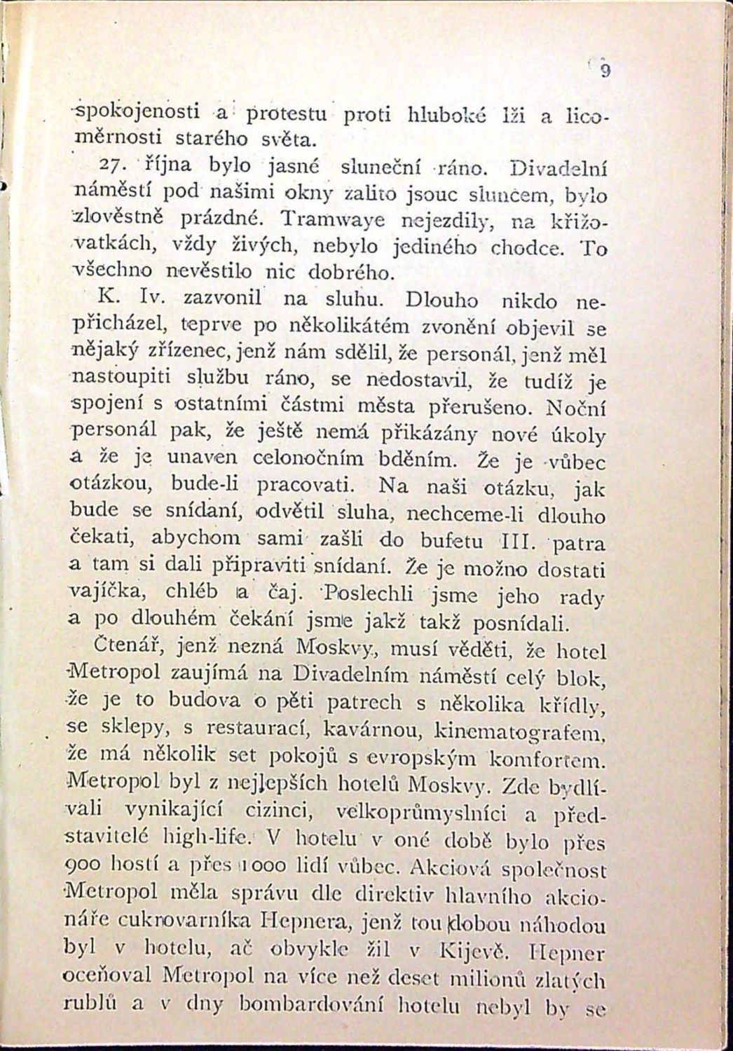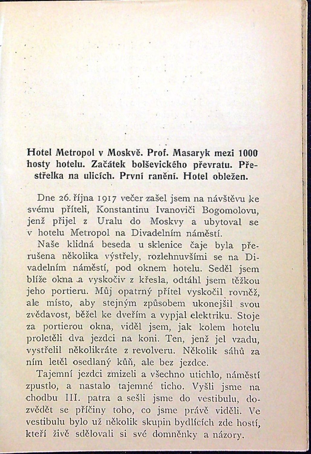 O čem president Masaryk ve svých pamětech nepíše. Události v moskevském hotelu "Metropol" za listopadového převratu v r. 1917. Líčí přímý účastník KDOSI.