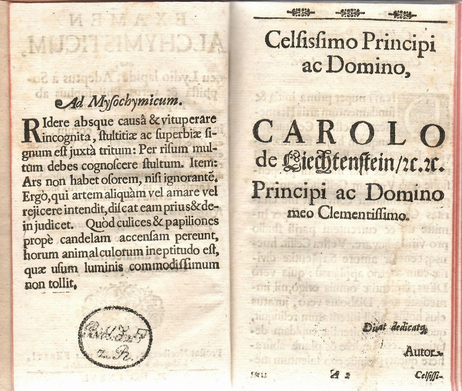 Fergusson II,165; Ferchl 393; Duveen 448; Kopp I,233-4; Kopp II,332<br>Prvních šest stran nečíslovaných, neživá záhlaví od sazby oddělená jednoduchou linkou, vstupní konturová iniciála na rostlinném pozadí ve výši 4 řádků, tučně tištěné versálky ve výši 2-3 řádků, viněty.<br>Kartonová vazba, ve hřbetu tlačený a zlacený název, na přední desce vazby hnědá skvrna s přilepeným kouskem kůže, při spodním okraji oválný zelený pap. štítek s číslem, na předním přídeští nalepeno mědiryt, ex libris z 18. století signované Grünter, na rubu tit. listu staré razítko neidentifikované zednářské lóže, při spodním okraji strany 44 staré razítko zednářské lóže "Bibliothek der Vereinten Loge" v německém Roztoku.<br>Franz Gassmann (okolo roku 1640 - po roce 1680) byl německý lékař a alchymista původem ze Slezska, jako lékař působil v Pasově a ve Vídni a své alchymistické práce publikoval v Norimberku a ve Vídni pod pseudonymem Pantaleon. Ve své době se proslavil zejména díky svým experimentům s kapalnou rtutí a tvrzením, že je schopen rtuť zmagnetizovat a použít ji k nalezení zlata.