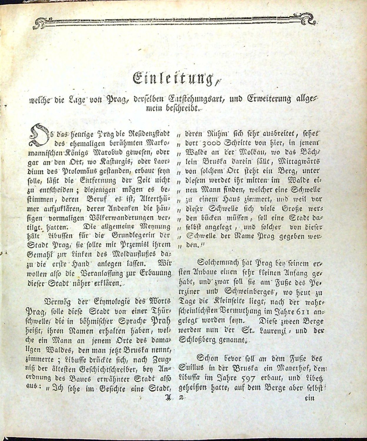 Knihopis 6975; Zíbrt I,1724; Holzmann-Bohatta VII,6071<br>Německý text gotikou, latinská jména panovníků versálkami a antikvou, signatury, stránkové kustody, arabské číslování stran při horním vnějším okraji, živá záhlaví, iniciály ve výši 2 řádků, viněty, dvojité jednoduché linky, viněty, rejstřík tištěný ve dvou sloupcích, chyby v paginaci. Za rejstříkem na s. 1 druhého dílu mezititul: "Beschreibung der königlichen Haupt= und Residenzstadt Prag. 1781", druhý díl tištěný ve dvou sloupcích, na s. 67/68 stručná historie Židovského města "Anhang von der Judenstadt", na s. 93 mezititul: "Geographischhistorische Beschreibung aller im Königreich Böheim befindlichen Städte, und anderer Merkwürdigkeiten. 1781". <br>Dobová vazba s kartonovými deskami potaženými škrobovým papírem, přes hřbet přelepená bílá kožená páska. Vazba ohmataná a odřená, naražené rohy. Červeně barvené ořízky. Papír místy lehce zahnědlý, tu a tam drobné světle hnědé skvrnky. Na několika listech přichycené dobové poznámky se vztahem k textu. Chybí frontispis. Pod vinětou perem napsané jméno jednoho z dřívějších vlastníků.<br>Zíbrt uvádí, že Kroniku do s. 220 podle V. Hájka z Libočan upravil Rosenhag, od Ferdinanda I. do s. 419 je autorem Pelcl, Popis Prahy je dílem prof. Ehmauta Elsenwangerische a geografický popis je přeložen z krátkého vypsání Země české od Josefa Táborského. Holzmann-Bohatta jako autora uvádí Xavera Franze Hubera, Tobolka autorství připisuje Pelclovi.