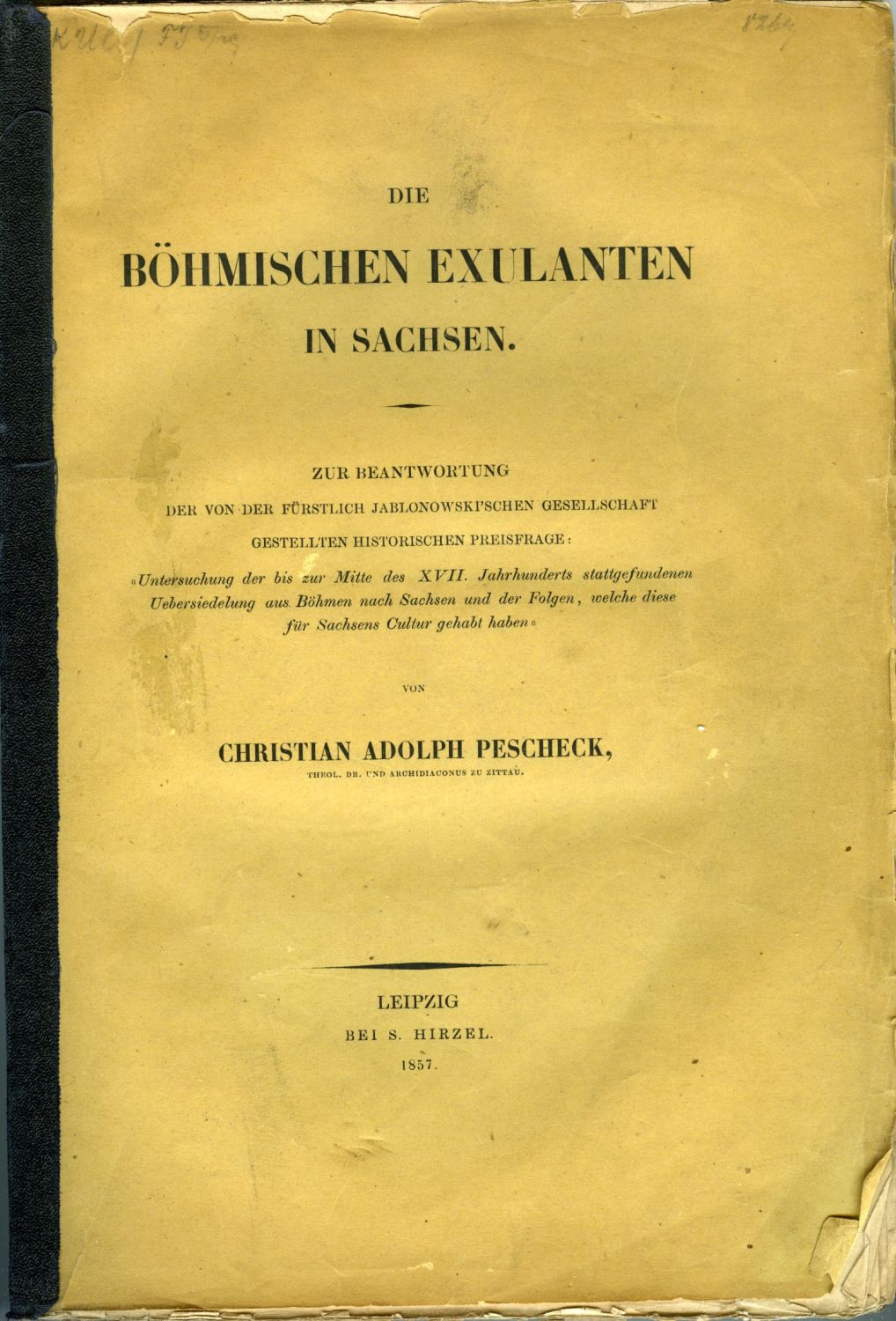 Die Böhmischen Exulanten in Sachsen. Zur Beantwortung der von der fürstlich Jablonowski'schen Gesellschaft gestellten hist. Preisfrage: "Untersuchung der bis zur Mitte des XVII. Jahrhunderts stattgefundenen Uebersiedelung aus Böhmen nach Sachsen und der Folgen, welche diese für Sachsens Cultur gehabt haben".