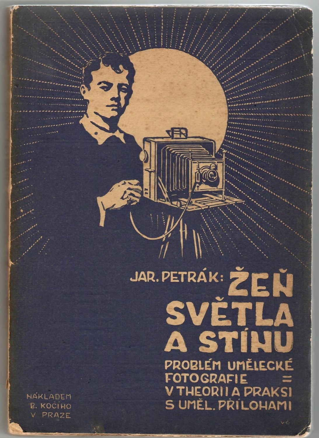 Mezi stranou 96-98 textu je 47 tabulí s ukázkami různých fotografií. - Původní papírová obálka, přední strana obálky do linolea řezaná s iniciálami autora V.Č. Obálka při spodním vnitřním okraji přední strany natržená a mírně pomačkaná, ve hřbetu místy chybí kousky pap. pokryvu. Na tit. listu starý vlastnický přípis.<br>První původní česká práce o teorii fotografie z pera Jaroslava Petráka (1883 Praha - 1917 Praha), amatérského fotografa a prvního teoretika české fotografie.