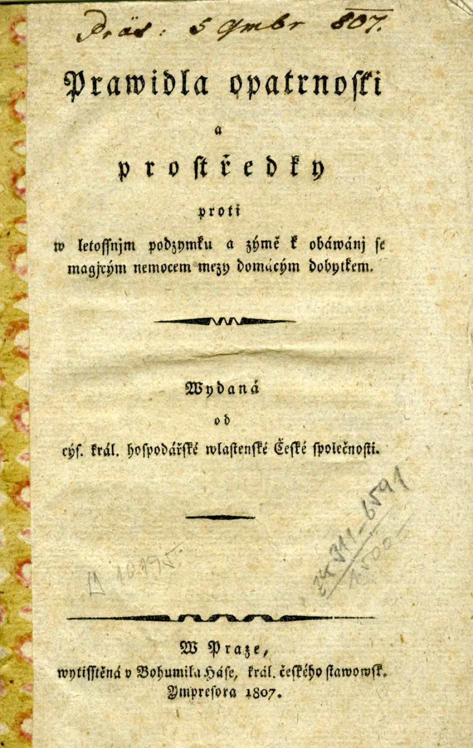 | Nakladatel / tiskar: | Cýs. král. hospodářská wlastenecká Česká společnost, vytištěná u Bohumila Háse |