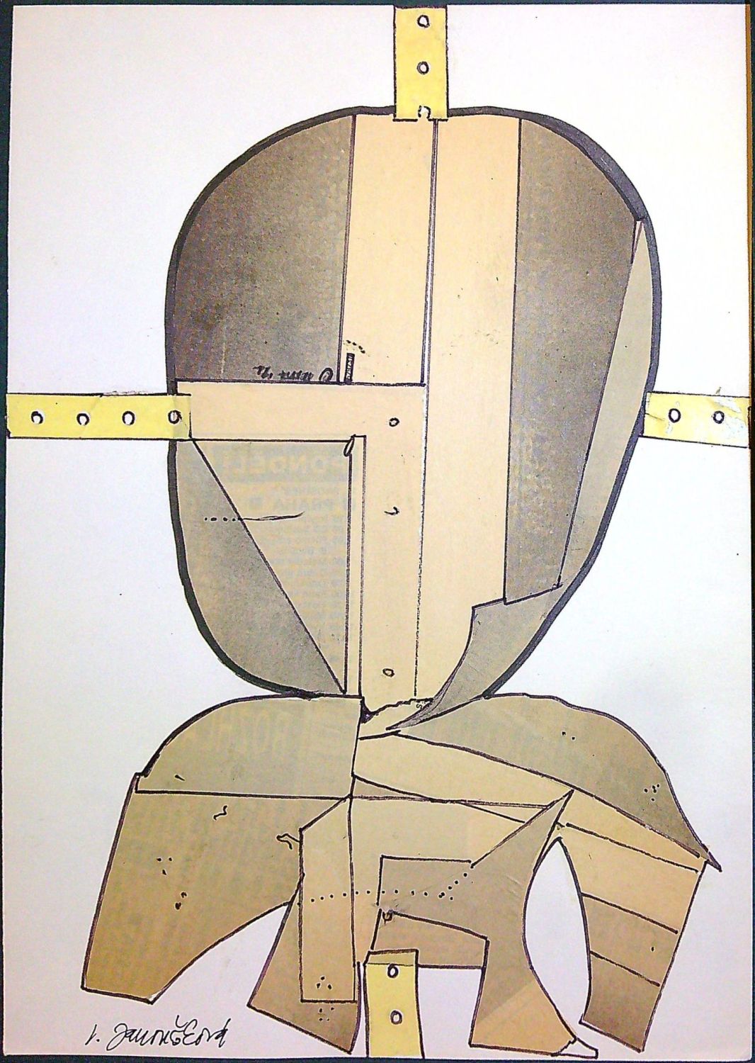 | Ilustrace: | Věra Janoušková - dvě původní koláže, první (88x58 mm) nalepená na přední straně obálky a autorkou vpravo dole černým perem monogramem signovaná, druhá (295x210 mm) uchycená při horních okrajích na přední předsádce, vlevo dole autorkou podepsaná, na rubu autorkou datovaná 1993, napsaný název "Hlava I" a ještě jednou podepsaná. |