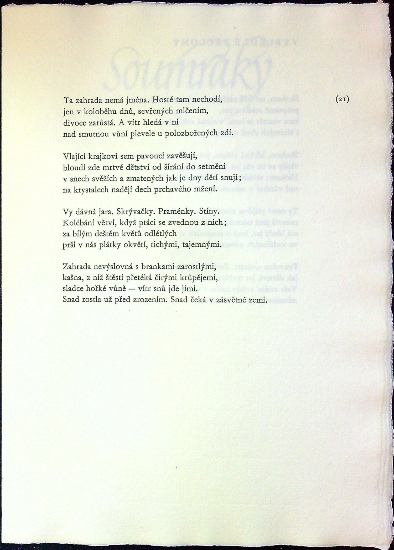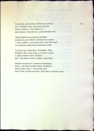Jeden z 800 vydaných exemplářů tištěných na ruční papír písmem Garamond (Monotype), vytiskla Střední průmyslová škola grafická v Praze, typograficky upravil Bohuslav Blažej. - Původní papírová obálka s chlopní, ve které je volně vložený složený knižní blok, původní ochranné kartonové pouzdro s chlopní. - Knihu vydal PNP pro Spolek českých bibliofilů v Praze jako prémii na rok 1981.